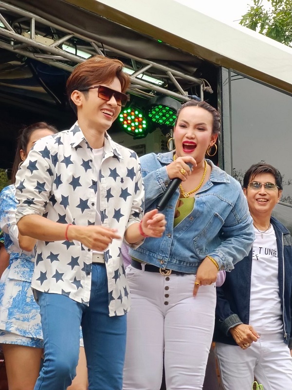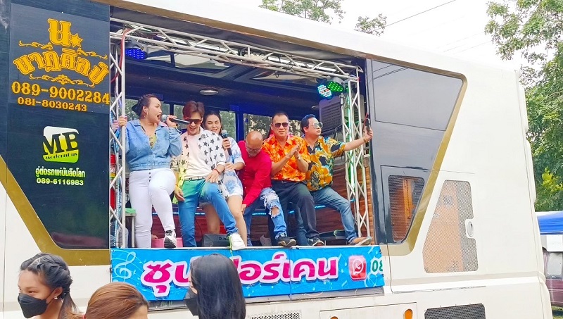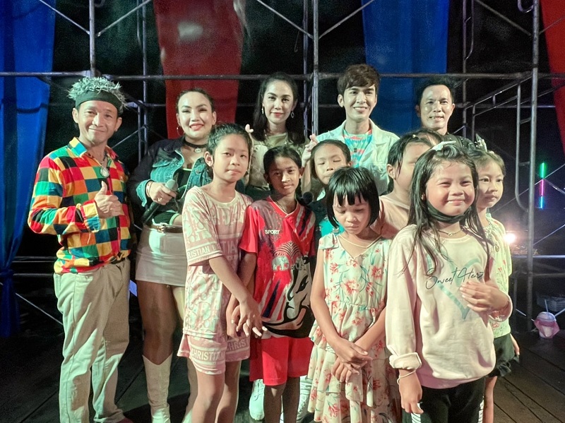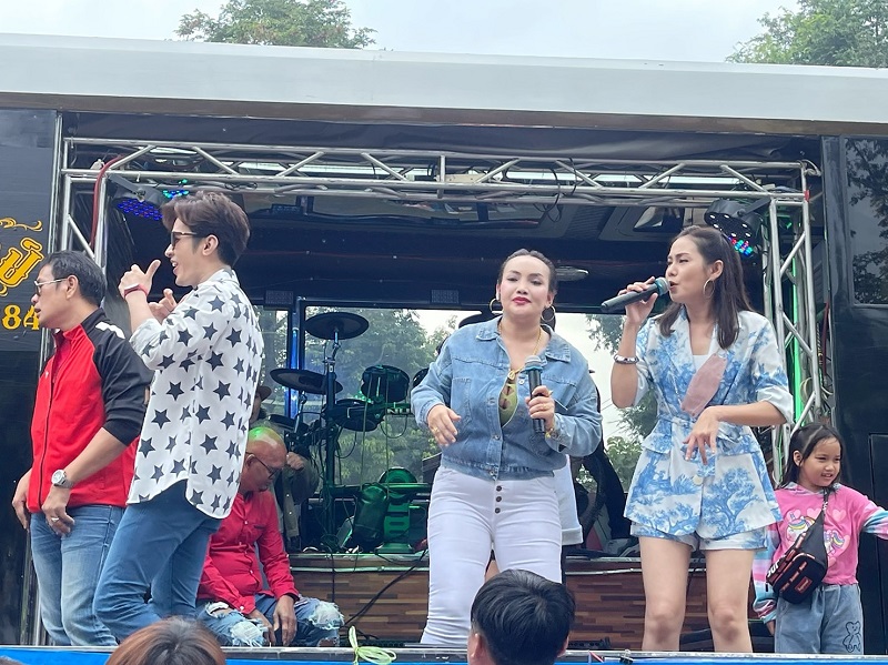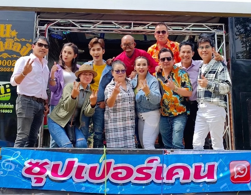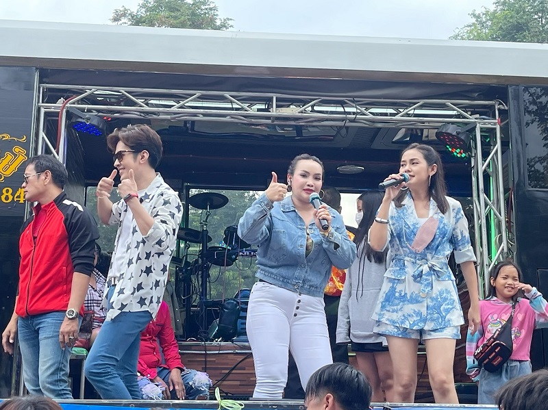 ซึ่งนอกจากนักร้องสาว จัสมิล ดีน่า จะเป็นผู้นำสายบุญแล้ว ยังมีศิลปินที่ร่วมบุญอีกหลายท่าน อาทิ “เคน ขวัญใจ ไมตรี” “ฟิวส์ กิติกร” “หน่อย สุนิสา” “เอก ธนากร” “วิลลี่ ผีก้าบก้าบ” “ปรีชา สลักใจ” “วิชาญน้อย ลูกธนบุรี” “มยุรา ฟ้าสีทอง” “นพคุณ อรุณรุ่ง” “แววตา สิวิไล” “กระรอกทอง ตลกไทย” และ “บก.ตุ่น อินเตอร์” พาชาวบ้านชาวช่องยิ้มย่องไปตามๆกัน เรียกว่ามันส์กันทั้งหมู่บ้านจรเข้เผือกกันเลยทีเดียว