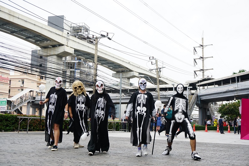 จริง ๆ ซีคอนสแควร์เราดูแลลูกค้าสี่สิบล้านคนต่อปีอยู่แล้วก็หมุนเวียนกันไปเรื่อย ๆ ในขณะเดียวกันพื้นที่โซนมันมันก็เป็นโซนใหม่ เราอยากจะตอบโจทย์คนที่ชอบอะไรเหมือน ๆ กัน สร้างชุมชนคนรุ่นใหม่ ก็จะมีอะไรหลาย ๆ อย่างสร้างประสบการณ์พวกนี้ ถ้าจบ Seacon Halloween The Series แล้ว ‘Srinakarian Artibition’ ก็จะมีกิจกรรมต่อเนื่องตลอดปี 2566 ก็แล้วแต่ว่าจะเป็นอะไร แต่จะเป็นเรื่องต่าง ๆ ที่น่าสนใจในย่านศรีนครินทร์ และทำให้คนมาท่องเที่ยวในย่านศรีนครินทร์มากขึ้น ซึ่งศรีนครินทร์เป็นย่านคนพักอาศัยเยอะแต่จริง ๆ แล้วมันมีอะไรที่น่าสนใจมากมาย เช่น มีวัดมหาบุศย์ สวนหลวง ร.9 สุวรรณภูมิ หรืออะไรต่าง ๆ นานา แล้วซีคอนสแควร์เหมือนเป็นศูนย์กลางและเพื่อนบ้านของศรีนครินทร์นะครับ ดังนั้นภารกิจอันหนึ่งที่เราจะทำให้ชุมชนของเรายั่งยืนขึ้น เราก็อยากจะส่งเสริมการท่องเที่ยวของย่านศรีนครินทร์เช่นเดียวกัน สำหรับ Seacon Halloween The Series คือเรามีพื้นที่ค่อนข้างเยอะ เราก็อยากให้เป็นพื้นที่การแสดงออกสำหรับใครก็ตามที่มีของ มีความมัน มีความที่อยากจะมาแสดงออกตอบเงื่อนไขพื้นฐานของเราได้และต้องให้ลูกค้าของเราตื่นตา ตื่นใจ ตื่นเต้นกับสิ่งเหล่านี้ เราก็คิดว่าคนรุ่นใหม่ไม่ว่าจะเป็นนักศึกษาหรือใครก็ตาม เราขอเชิญชวนติดต่อเราเข้ามาได้ครับ”
