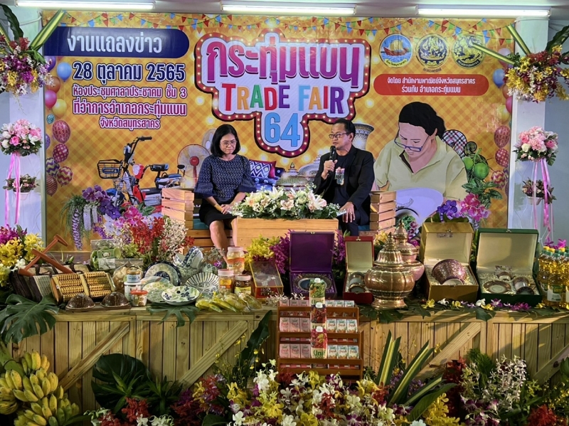นางสาวสุวีรยา ปั้นปาน พาณิชย์จังหวัดสมุทรสาคร กล่าวว่า สำนักงานพาณิชย์จังหวัดสมุทรสาคร มีบทบาทและภารกิจในการส่งเสริมและสนับสนุนการค้า จึงได้ บูรณาการกับอำเภอกระทุ่มแบนขอรับงบประมาณจากจังหวัดสมุทรสาครดำเนินการจัดงาน “กระทุ่มแบนเทรดแฟร์ 64” เพื่อฟื้นฟูและกระตุ้นเศรษฐกิจภาคอุตสาหกรรม ภาคเกษตรกรรม และวิสาหกิจชุมชนในพื้นที่อำเภอกระทุ่มแบน และพื้นที่อื่นในจังหวัดสมุทรสาคร ที่ได้รับผลกระทบจากสถานการณ์การแพร่ระบาดของโรคติดเชื้อไวรัสโคโรนา 2019 (COVID-19) และเป็นการประชาสัมพันธ์สินค้าที่มีชื่อเสียง ของอำเภอกระทุ่มแบนและจังหวัดสมุทรสาคร ให้เป็นที่รู้จัก ให้กับจังหวัดใกล้เคียง และผู้ที่มาเยี่ยมชมงาน