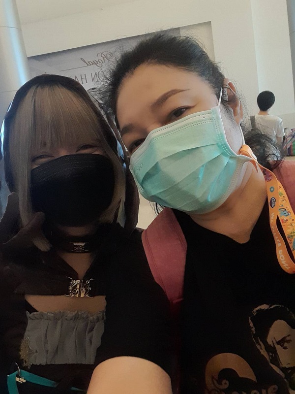 “ชุดที่แต่งวันนี้คือ ฮันเซล (Hansel) จากSINoALICE เป็นเกม RPG แนวเทพนิยายสมัยก่อนค่ะ ที่หนูเลือกแต่งชุดนี้มา เพราะรายละเอียดชุดเหมือนหนูน้อยหมวกแดงด้วยค่ะ มันน่ารัก การแต่งตัวหนูออกเงินเองหมด ตั้งแต่ค่าเช่าชุด ก็เช่ามาจากร้านเช่าเป็นร้านประจำเลยค่ะ ส่วนคอนแทคเลนส์สีฟ้าที่ใส่ก็ซื้อมาค่ะ หนูเพิ่งแต่งชุดคอสเพลย์ชุดนี้เป็นผลงานครั้งที่ 3 ค่ะ ครั้งแรกแต่งเป็น จาบามิ ยูเมะโกะ จากมังงะ Kakegurui โคตรเซียน และชุดซีลอน จากเกม อาร์คไนน์ ส่วนชุดที่มีคนมาขอถ่ายรูปเยอะที่สุดตอนแต่งชุดซีลอนค่ะ เพราะรายละเอียดชุดมันสวยมากเลย ชุดมันเป็นสีชมพูแล้วก็มีจุก แล้วพอเราแต่งตัวก็รู้สึกเข้ากับภาพลักษณ์นั้นด้วยค่ะ ตอนนี้หนูศึกษาอยู่มหา’ลัย ปี 1 ค่ะ เหตุที่ลงทุนกับคอสเพลย์เพราะเป็นความชอบของตัวเองล้วน ๆ เลยค่ะ เพราะว่าแต่ก่อนไม่มีทุนทรัพย์พอ แต่พอมาเรียนในกรุงเทพพอมีเงินเก็บก็หาร้านเช่าชุด คือเป็นความชอบส่วนตัวค่ะ ในเรื่องของการแต่งออกงานหนูจะดูตารางงานจากในกูเกิลว่ามีงานคอสเพลย์ที่ไหนบ้าง แต่ก็ต้องดูทุนทรัพย์ด้วยว่างานนี้ไป งานนี้ไม่ไปด้วยช่วงนี้งานคอสมันติด ๆ กันด้วยค่ะ วันนี้มาก็ทุนทรัพย์เราเองค่ะ (ยิ้มถึงตาที่สวมคอนแทคเลนส์สีฟ้า)”