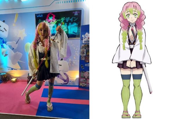 “ชุดที่แต่งวันนี้ คือ “มิซึริ” จาก “ดาบพิฆาตอสูร | Demon Slayer” ค่ะ สำหรับชุดวันนี้เราเลือกแต่งมาเองเพราะว่าบูธของ bilibili เป็นแอปพิเคชันแพลตฟอร์มที่เรียกว่าเป็นคลังคอนเทนต์สำหรับคนที่ชื่นชอบอะนิเมะและก็มีอะนิเมะมากที่สุดในเอเชียตอนนี้ ก็คือใครที่อาจชอบดูยูทูบ แต่bilibili เป็นแพลตฟอร์มอีกหนึ่งช่องทางน่ะค่ะ จริง ๆ แล้วหนูเป็นพิธีกรเอ็มจี แล้วเด่น ๆ หนูเป็นนางแบบเอ็นเตอร์เทน หนูเข้าวงการคอสเพลย์มาสิบปีแล้วค่ะ แต่หลัก ๆ เน้นเรื่องของการเป็นพิธีกรมากกว่าค่ะ สำหรับชุดคอสเพลย์ที่แต่งแล้วคนสนใจมาขอถ่ายรูปมากที่สุดตอนหนูแต่งเป็น Crystal Maiden จาก DotA เป็นเกมที่คนรู้จักค่ะ ซึ่งส่วนตัวหนูชอบแต่งอยู่แล้วและก็ลงทุนเองหมดเลยค่ะ แต่รายได้มาจากเป็นพิธีกรในงานค่ะ การแต่งคอสเพลย์ก็สามารถทำเป็นอาชีพได้ในความชอบของคุณเพียงคุณสร้างโอกาสให้มันค่ะ”