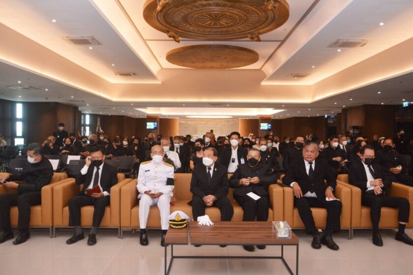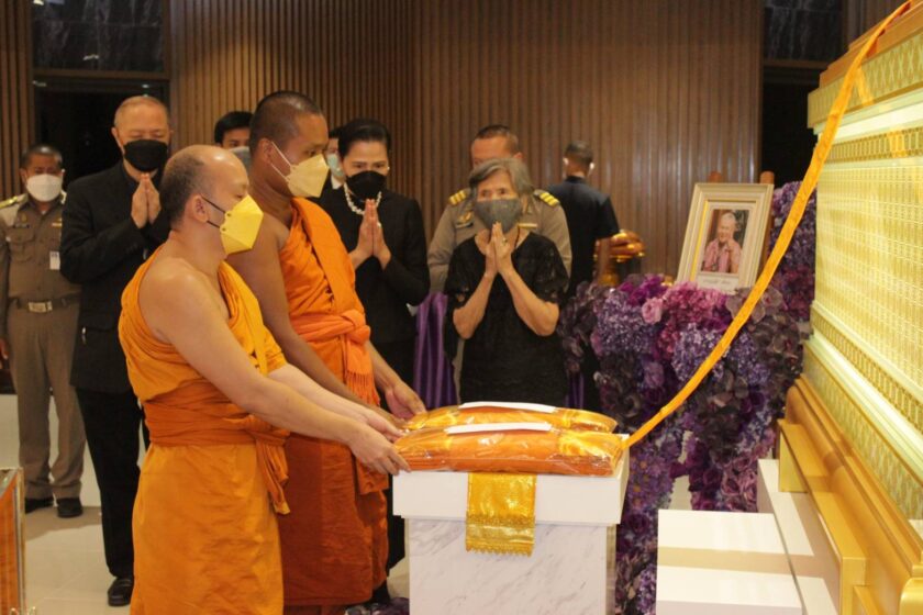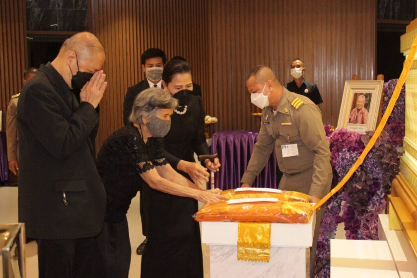 อดีตอธิบดีกรมโรงงานอุตสาหกรรม, รองศาสตราจารย์ทวีศักดิ์ สูทกวาทิน อดีตสมาชิกสภานิติบัญญัติแห่งชาติร่วมทอดผ้าบังสกุล ท่ามกลางญาติมิตรและผู้มีเกียรติจากหลากหลายวงการ อาทิเช่น