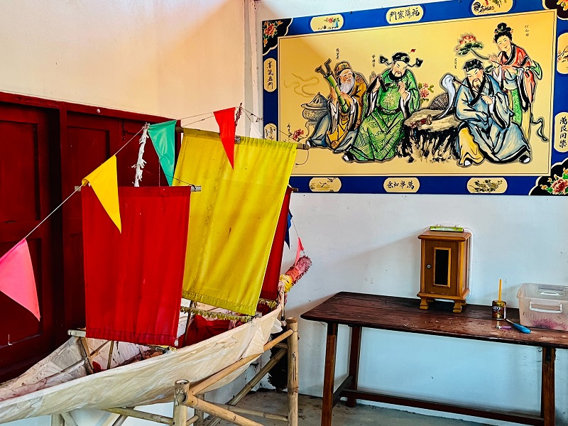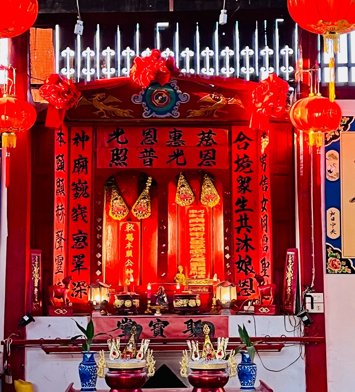 ชุมชนนี้ต่อมาได้จัดสร้างเจ้าศาลเจ้าซึ่งเป็นศาลเจ้าไม้เล็กๆ ประดิษฐานองค์เจ้าแม่ทับทิม ซึ่งอัญเชิญมาจากเกาะไหหลำแกะสลักด้วยไม้ซึ่งน่าจะเป็นไม้จันทน์หอม “ศาลเจ้าแม่ทับทิม” นี่จึงเป็นศูนย์รวมจิตใจของชาวชุมชนริมน้ำน่านและถือว่าเป็นสถานที่ศักดิ์สิทธิ์คู่ชุมชนบ้านวังส้มซ่ามาเกิน 100 ปี พ่อค้า แม่ค้าจะมากราบบูชาขอพรส่วนใหญ่ขอให้ค้าขายดีหรือกิจการเจริญรุ่งเรือง ผู้ดูแลศาลเจ้าเล่าเรื่องราวให้ฟังว่าส่วนใหญ่จะได้ผลสำเร็จดีมาก ซึ่งทุกปีของเดือนเมษายนจะมีประเพณีลอยเรือสำเภาในลำน้ำน่านเพื่อบูชาองค์เจ้าแม่ทับทิมและเป็นการปล่อยหรือลอยเคราะห์ไปกับสายน้ำท่านผู้อ่านไปเที่ยวบ้านวังส้มซ่าก็ขอพรได้ครับ สำหรับผมก็ไม่พลาดครับได้กราบบูชาขอพรต่อหน้า “องค์เจ้าแม่ทับทิม” ด้วยเช่นกันครับ