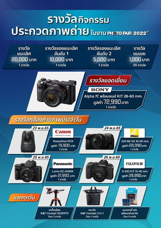 PHOTO FAIR 2022 จัดขึ้น ระหว่างวันที่ 23-27 พฤศจิกายน 2565 ที่ ไบเทค บางนา ตั้งแต่เวลา 11.00 น. – 21.00 น.