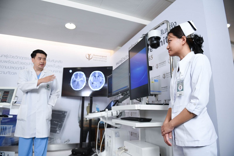 ศ. พญ. ศิรินธรา สิงหรา ณ อยุธยา แพทย์ชำนาญการเฉพาะทางด้านรังสีร่วมรักษาระบบประสาทและไขสันหลัง โรงพยาบาลบำรุงราษฎร์ กล่าวเสริมว่าบำรุงราษฎร์มีแนวทางการรักษาด้วยวิธีอื่น ๆ นอกจากวิธีการผ่าตัด เนื่องจากมีผู้ป่วยในหลายกรณีที่ไม่เหมาะกับการผ่าตัด เช่น ข้อจำกัดเรื่องอายุ หรือมีโรคประจำตัวบางโรค ซึ่งการรักษาแบบรังสีร่วมรักษาระบบประสาท (Neuro Intervention) จึงเข้ามาตอบโจทย์ผู้ป่วยกลุ่มนี้ โดยเป็นการทำงานร่วมกับทีมแพทย์อายุรกรรมและทีมแพทย์ด้านประสาทศัลยกรรม โดยการรักษาวิธีนี้จะเป็นการผ่าตัดแบบไม่เปิดกะโหลก ซึ่งเป็นศาสตร์ทางการแพทย์เฉพาะทางรังสีวิทยาเพื่อการตรวจวินิจฉัยและการรักษาโรคด้านโรคหลอดเลือดสมองและไขสันหลังโดยเทคโนโลยี Minimally Invasive Surgery (MIS) เน้นการเปิดแผลเล็ก โดยเจาะรูบริเวณเส้นเลือดต้นแขนหรือต้นขา ประมาณ 1-2 มิลลิเมตร ร่วมกับการใช้เทคโนโลยี Bi-plane เครื่องมือเอกซเรย์ 2 ระนาบ ทำให้เห็นความชัดเจนของเส้นเลือดเพื่อสอดอุปกรณ์ขนาดเล็กเท่าเส้นผมเข้าไปรักษาหลอดเลือดในสมองและไขสันหลังได้อย่างถูกต้องแม่นยำ โดยสามารถรักษาได้ทั้งโรคหลอดเลือดสมองตีบหรืออุดตันในระยะเฉียบพลัน โรคหลอดเลือดโป่งพองในสมอง หรือเป็นปานหลอดเลือดแดงต่อดำ ตั้งแต่กำเนิดหรือเกิดภายหลัง รวมถึงโรคหลอดเลือดไขสันหลัง อีกทั้งยังช่วยลดระยะเวลาพักรักษาในห้อง ICU และลดอาการแทรกซ้อนได้