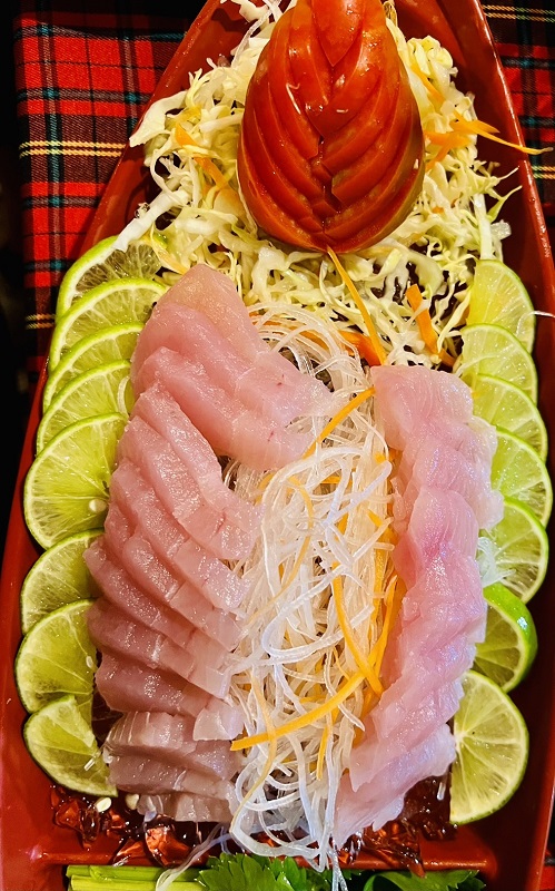 เมนูที่ 3 คือเมนูเด็ดเรียกความเร้าใจ “ปลาขยี้สวาท” ปลาสดๆ แล่เนื้อปลาเป็นชิ้นบางๆ แล้วจิ้มกับวาซาบิ ผสมกับซีอิ้วขาว แบบสไตล์การกินปลาสดของคนญี่ปุ่นเลยทีเดียวจิ้มวาซาบิซี๊ดซ๊าดขึ้นจมูก แบบนี้มั้งครับที่เรียกว่าปลาขยี้สวาทมันออกทั้งรสชาติและอารมณ์ของการกินเมนูนี้จริงๆ เมนูนี้อาจจะทำให้หลายๆ ท่านลืมปลาแซลม่อนจิ้มวาซาบิไปเลยก็ได้ครับ ขอบอกว่าต้องลองครับ