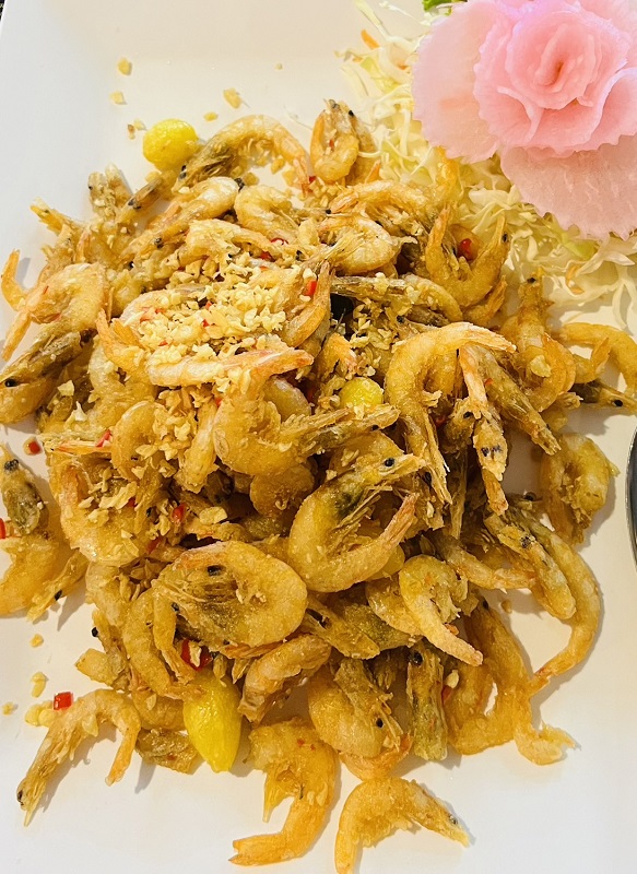เมนูแรก “กุ้งซิวทอดเกลือ” เป็นกุ้งในทะเลอ่าวภาคตะวันออกที่ชาวประมงออกเล (ออกทะเล) จับส่งสดๆ ให้ร้าน ซึ่งผมขอบอกว่าการกินอาหารทะเลให้อร่อยถึงใจที่ดีที่สุดคือการกินอาหารทะเลที่จับได้สดๆ แบบนี้ล่ะครับ เนื้อกุ้งสดเด้ง หนึบ เพราะความสดใส หอมกลิ่นเกลือหน่อยๆ อร่อยถูกใจโดยเฉพาะความสดแบบเด้งๆ ของเนื้อกุ้งจริงๆ ครับ