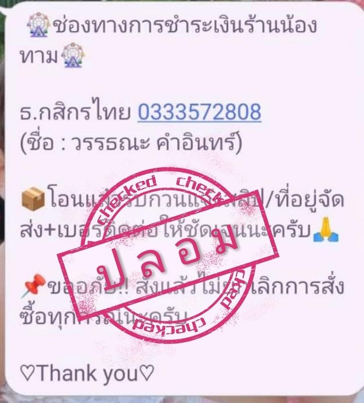 โดนจนได้ น้องทาม – วรรธณะ คำอินทร์ ถูกมิจฉาชีพเอาเพจของน้องทาม ไปปลอมขายกะเป๋าให้กับลูกค้าเเละหลอกให้ลูกค้าโอนเงิน โดยตั้งบัญชีเป็นธนาคารกสิกรไทยใช้ชื่อน้องทาม วรรธนะ คำอินทร์ เพื่อแอบอ้าง แต่พอลูกค้าโอนเงินไปให้ไม่ได้มิจฉาชีพจึงหลอกให้ลูกค้าทำการโอนผ่านเเอปTrueMoney