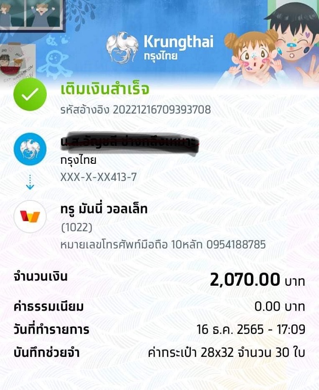 และเมื่อลูกค้าทำการโอนเงินผ่านเเอปTrueMoney เรียบร้อยก็ส่งสลิปไปให้ดูจากนั้นมิจฉาชีพก็ทำการบล็อกเพื่อไม่ให้ลูกค้าติดต่อได้อีก ทำให้ลูกค้ารู้แล้วว่าถูกโกงแน่จึงหาเบอร์โทรของคุณแม่น้องทามเพื่อถามเรื่องของที่สั่งพร้อมเงินที่โอนไป แต่ก็ได้ทราบจากคุณแม่น้องทามว่ายังไม่เห็นแบบที่สั่งวาดเลยนะ และก็ไม่มีเงินโอนเข้ามาแต่อย่างใด ลูกค้าที่ถูกหลอกยิ่งแน่ใจว่าถูกมิจฉาชีพหลอกให้โอนเงินจริง ๆ ซึ่งเหตุการณ์ดังกล่าวก่อนหน้านี้ก็เคยมีลูกค้ามาเเจ้ง 3 รายว่าให้โอนเงินเเล้วก็ไม่ได้รับของเหมือนกัน