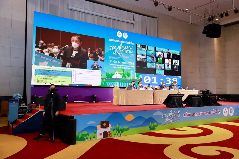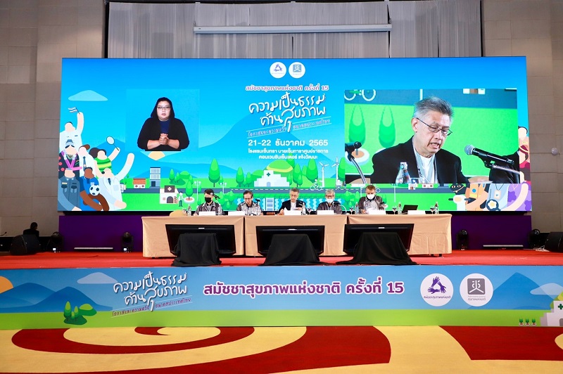 ภายในงานได้รับเกียรติจาก นายอนุทิน ชาญวีรกูล รองนายกรัฐมนตรี เป็นประธานเปิดงานและร่วมปาฐกาพิเศษ จากนั้น คณะกรรมการสุขภาพแห่งชาติ และภาคีเครือข่าย ได้ร่วมประกาศเจตนารมณ์ “ ความเป็นธรรมด้านสุขภาพ โอกาสและความหวังอนาคตประเทศไทย ” ร่วมกันร่วมกับการพิจารณาระเบียบวาระต่างๆ จากนั้นในช่วงบ่าย รองศาสตราจารย์ นายแพทย์องค์การ เรืองรัตนอัมพร รองเลขาธิการราชวิทยาลัยจุฬาภรณ์ ในนามผู้แทนราชวิทยาลัยจุฬาภรณ์ ได้ร่วมเวทีแสดงถ้อยแถลงเพื่อการขับเคลื่อนมติสมัชชาสุขภาพแห่งชาติ ครั้งที่ 15 พ.ศ.2565 ในมติ การขับเคลื่อนแพลตฟอร์มเชื่อมโยงและบูรณาการข้อมูลสถิติการออกกำลังกาย และการเล่นกีฬาของประชาชน (Calories Credit Challenge: CCC) ภายใต้ แนวคิดโมเดลเศรษฐกิจสู่การพัฒนาที่ยั่งยืน (Bio-Circular-Green Economy : BCG Model) เพื่อการยกระดับสุขภาพและคุณภาพชีวิตประชาชน ในงานครั้งนี้ด้วย