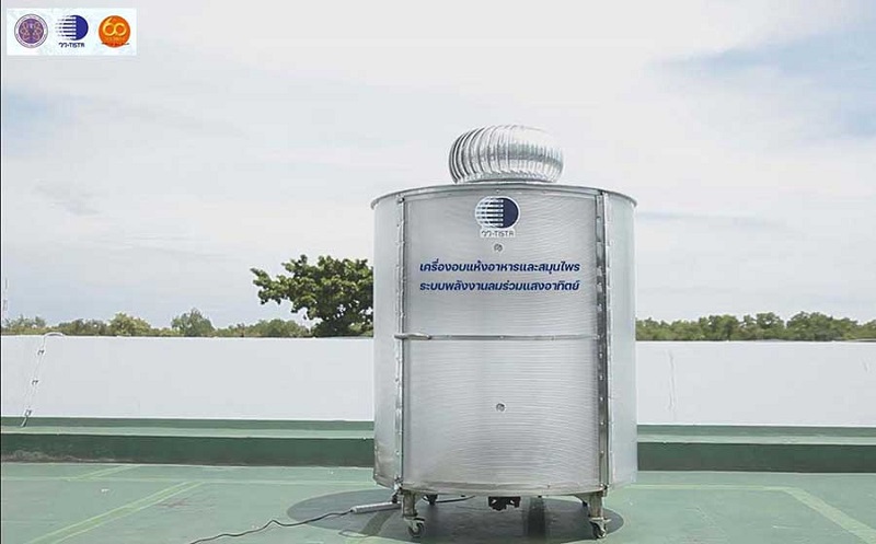 และอีกหนึ่งผลงานพัฒนานวัตกรรม คือ เครื่องอบพลังงานลมร่วมแสงอาทิตย์ (Vortex-Circulating Solar Dryer) โดย วว. มีการออกแบบภายนอกให้เป็นวัสดุโปร่งแสง เพื่อรับพลังงานแสงอาทิตย์เก็บสะสมไว้ในห้องอบ ขณะที่ภายในประกอบด้วยชั้นวางถาด ด้านบนเป็นพัดลมดูดความชื้นทำหน้าที่ต้านกระแสลม ให้เกิดลมหมุนวนในห้อง เพื่อดูดความชื้น มีลิ้นวาล์วเปิด-ปิด เพื่อควบคุม อัตราการไหลเวียนของอากาศ โดยหลักการทำงานจะเริ่มจากการเตรียมวัตถุดิบมาหั่นสไลซ์ แล้วนำมาวางเรียง จากนั้น จะปิดฝาตู้ ส่วนตำแหน่งการวัดอุณหภูมิจะมี 2 จุดคือวัดอุณหภูมิจากส่วนบนและส่วนล่าง โดยอุณหภูมิที่อบและทั่วไปอยู่ที่ 60 องศา
