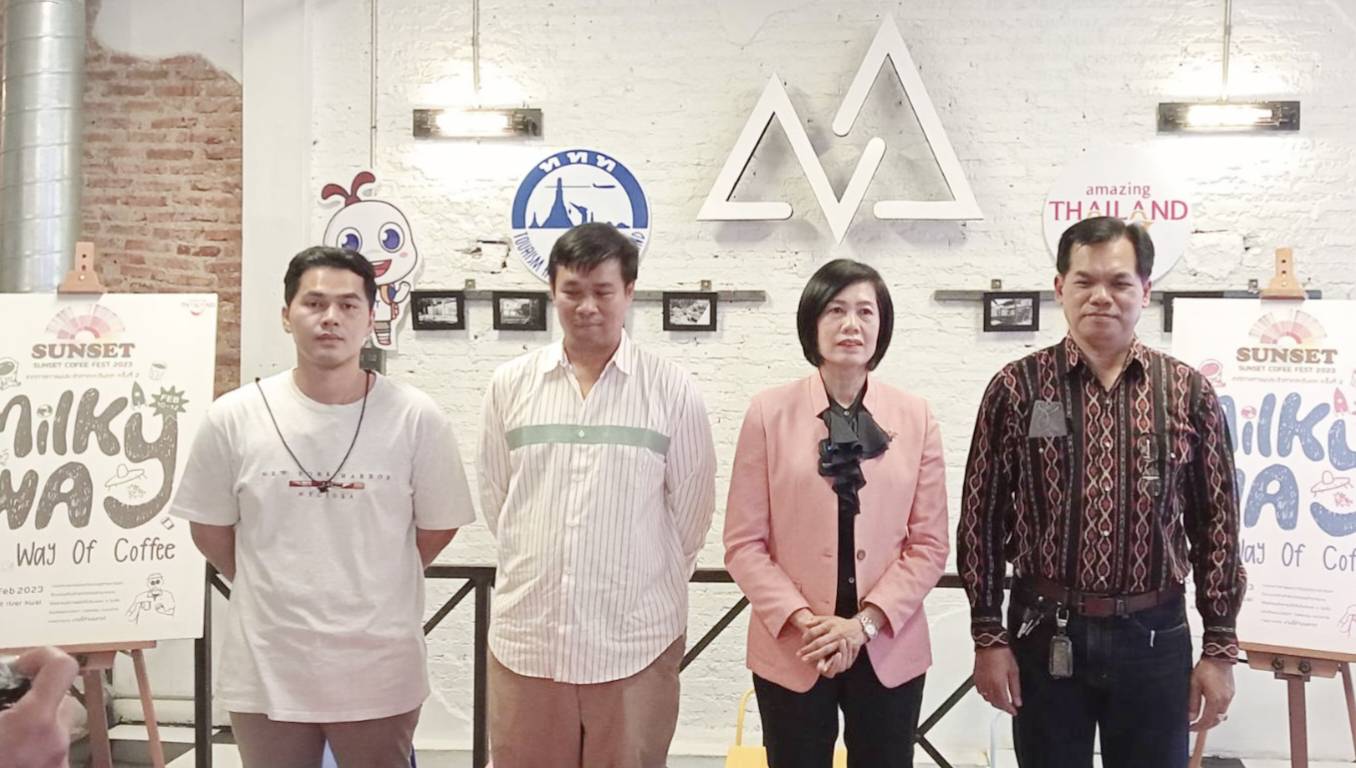 วันนี้ 1 กุมภาพันธ์ 2566 ณ ร้าน MAS. Stay-at-Café อ.เมืองกาญจนบุรี นางสาวสรียา บุญมาก ผู้อำนวยการ ททท. สำนักงานกาญจนบุรี  นายประสาน  ปานคง  เกษตรจังหวัดกาญจนบุรี  นายมนเทพ  โพธิ์งาม  เลขากลุ่มกาแฟพิเศษกาญจนบุรี  และนายเอกราช  ปุณยถิรวาณิชย์  ผู้บริหารร้าน MAS. Stay-at-Café (Winner SANREMO Thailand x BONSOY Latte Art Smackdown 2022) ร่วมกันแถลงข่าวการจัดงาน Sunset Coffee Fest 2023 เทศกาลกาแฟแห่งภาคตะวันตก ครั้งที่ 2 “Milky Way, the Way of Coffee”