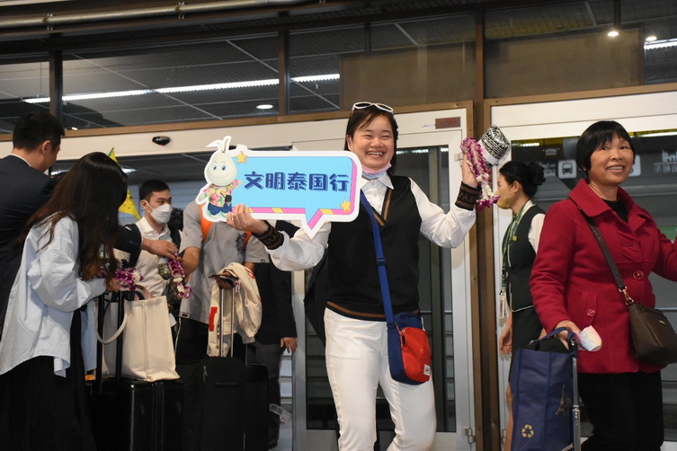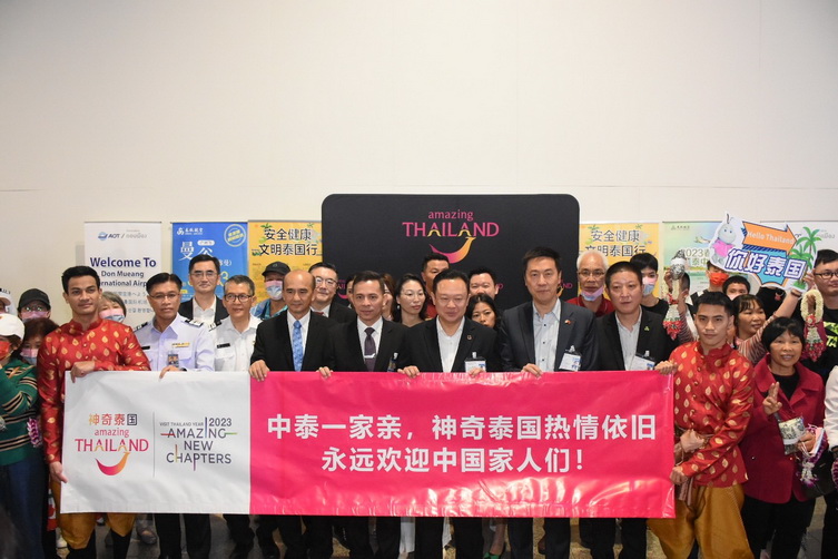 เช้านี้ (6 กุมภาพันธ์ 2566) การท่องเที่ยวแห่งประเทศไทย (ททท.) ร่วมกับสถานเอกอัครราชทูตสาธารณรัฐประชาชนจีนประจำประเทศไทย และสายการบินสปริงแอร์ไลน์ จัดพิธีต้อนรับนักท่องเที่ยวจีนแบบกรุ๊ปทัวร์คณะแรก บินตรงเส้นทางนครกว่างโจว สาธารณรัฐประชาชนจีน – ดอนเมือง ด้วยสายการบินสปริงแอร์ไลน์ เที่ยวบิน 9C7419 จำนวน 40 คน โดยมี Mr. Yang Xin อุปทูตรักษาราชการแทนเอกอัครราชทูตสาธารณรัฐประชาชนจีนประจำประเทศไทย และนายยุทธศักดิ์ สุภสร ผู้ว่าการ ททท. ร่วมกันให้การต้อนรับนักท่องเที่ยวอย่างอบอุ่น ณ ท่าอากาศยานดอนเมือง กรุงเทพฯ