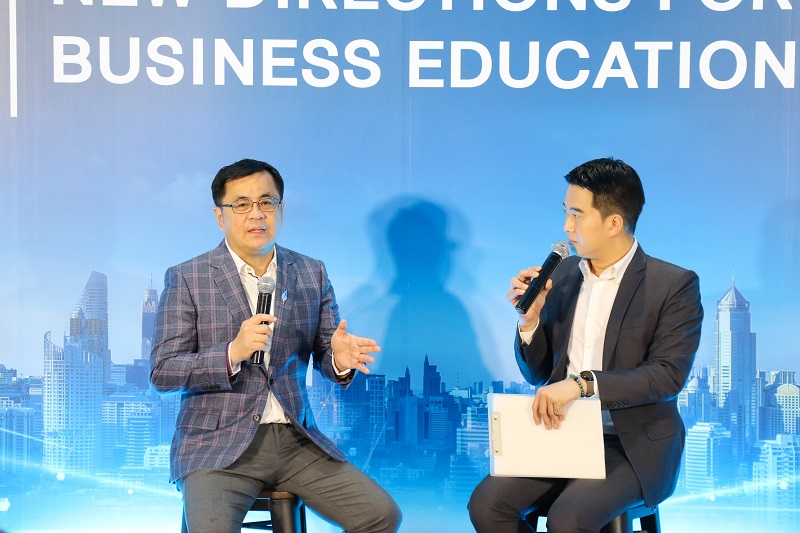 คุณพิทักษ์ กล่าวเสริมว่า เรียนที่นี่ได้ทั้งความรู้และมิตรภาพที่ยั่งยืน และรองศาสตราจารย์ ดร.วิเลิศ ภูริวัชร กล่าวปิดท้ายว่า ปัจุบันในโลกที่มี ChatGPT สามารถทำงานแทนพนักงาน และทำการบ้านแทนนิสิต ระบบการศึกษาจึงต้องปรับตัวให้คณาจารย์และระบบการศึกษาให้มีความสามารถเท่าทันหรือเกินคำตอบจาก ChatGPT ซึ่งคุณภาพการเรียนต้องวัดความสามารถในระดับที่ ChatGPT ทำไม่ได้ ซึ่ง ChatGPT เกิดจาก AI ดังนั้นการชนะ AI (Artificial Intelligence) ต้องเป็นการศึกษาระดับ EI (Emotional Intelligence ) และย้ำถึงสิ่งที่สถาบันการเรียนการสอนด้านธุรกิจ ต้องให้ความสำคัญ เพื่อเป็นแหล่งผลิตบุคลากรคุณภาพออกสู่ตลาด ด้วย กลยุทธ์ SHIFT Segmentation by insight : ต้องทำการแบ่งส่วนตลาดใหม่ โดยแบ่งตาม Insight ของคนในช่วงเวลานี้ เพื่อวิเคราะห์หากลุ่มลูกค้าที่ยังเป็นแหล่งรายได้ ซึ่งจากนี้ไปการวัดพฤติกรรมของผู้บริโภคจะไม่ได้แบ่งตามอายุ เพศ วัย รายได้ การศึกษาอีกต่อไป แต่จะดูจากความต้องการของผู้บริโภคเป็นหลัก เช่น ในธุรกิจการศึกษา การเปิดหลักสูตร MBA ไม่ได้เจาะจงกลุ่มเป้าหมายวัยรุ่นเท่านั้น แต่เปิดกว้างให้ทุกเพศ วัย สามารถมาเรียนด้วยกันได้