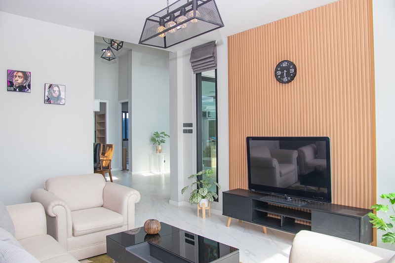 “อีกสิ่งหนึ่งที่ถือว่าเป็นจุดแข็งของโครงการคือบ้านทุกหลัง ก่อสร้างด้วยการก่ออิฐมวลเบาฉาบปูน จึงตอบโจทย์ในด้านความคงทน สามารถตอกหรือเจาะพนังได้โดยไม่ต้องกังวล พร้อมติดชนวนกันความร้อน จึงช่วยประหยัดพลังงานเพราะผนังสามารถระบายความร้อนได้ดี และดูดซับเสียง ที่สำคัญบ้านทุกหลังก่อสร้างบนพื้นที่ที่มีการปรับพื้นที่รองรับการก่อสร้างมานานกว่า 3 ปี และมีระบบฐานรากที่แข็งแรง ลูกบ้านจึงหมดกังวลเรื่องการทรุดตัว รวมถึงภายในโครงการยังเป็นระบบไฟฟ้าใต้ดิน จึงไม่มีเสาและสายไฟฟ้ามาบดบังทัศนียภาพ เวลาที่ลูกบ้านขึ้นไปนั่งพักผ่อนบนดาดฟ้าของบ้านก็จะได้ชมวิวได้อย่างสบายตา”