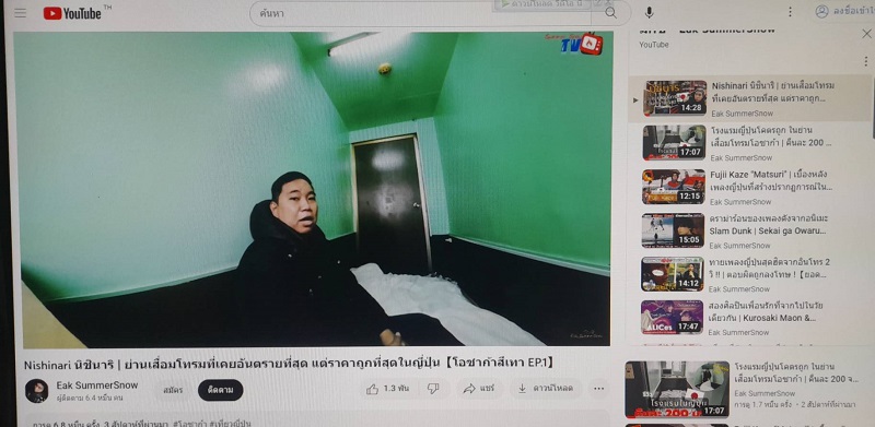 ช่วงนี้กระแสทำช่องยูทูบเป็นที่สนใจมาก เปิดไปทางไหนก็จะเห็นหลายช่องแล้วแต่จะเลือกคอนเทนต์กัน ซึ่งก็เห็นบ่อยเรื่องเที่ยว เรื่องกิน แต่ที่เราประสบกับตัวตรงหาข้อมูลในยูทูบเรื่องที่ต้องการรู้เสียส่วนใหญ่ และบังเอิญไปเจอเรื่อง “โรงแรมญี่ปุ่นโคตรถูก ในย่านเสื่อมโทรมโอซาก้า | คืนละ 200 จะนอนได้ไหม? ที่นำเสนอโดย “เอก – อนุสิกข์ ศิรินันท์” จากที่ดูเรี่องนี้ก็ชอบ เพราะไม่เคยรู้เลยว่าที่ญี่ปุ่นจะมีห้องแบบนี้ หรือเรื่อง “Nishinari นิชินาริ | ย่านเสื่อมโทรมที่เคยอันตรายที่สุด แต่ราคาถูกที่สุดในญี่ปุ่น” เชื่อไหม? ดูจบไม่ได้เกิดความกลัวย่านที่ถูกเรียกว่าเสื่อมโทรม แต่หันไปคุยกับคุณสาว่าน่าไปเที่ยวเนอะ อย่างว่าเราสองคนเป็นนักข่าวแต่คนละสายงานก็อยากลงสนามไปดูสภาพเมืองนิชินาริว่าเป็นอย่างไร จากนั้นก็ดูช่องของคุณเอกเกือบครบทุกเรื่อง เพราะได้นำเสนอเรื่องราวที่ไม่เคยรู้มาก่อนได้น่าติดหนึบ อย่างเรื่อง “ย่านโคมแดงกลางเมืองโอซาก้า ผิดกฎหมายไหม ? | Tobita shinchi โทบิตะชินจิ” ดูและฟังไปก็ขำการบรรยายที่ไหลลื่นตบมุกให้ไม่เบื่อกลับน่าฟัง ซึ่งถ้าคนที่ชอบดูยูทูบแล้วไม่รู้จะดูอะไรลองคลิกเพจ Eak SummerSnow จะเปิดโลกกว้างของญี่ปุ่นในมุมที่ไม่เคยเห็นมาก่อน ตัวเราเลือดนักข่าวกระตุ้นให้ทักขอสัมภาษณ์เจ้าของช่องยูทูบที่ไม่สนยอดวิวแต่เน้นเนื้อหาที่น่ารู้กับผู้ชม โดยเอก – อนุสิกข์เล่าว่า