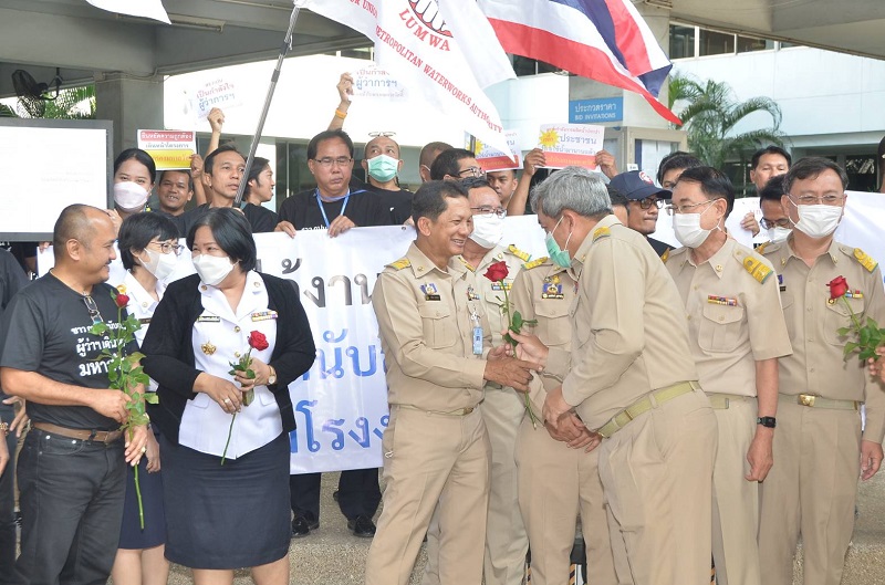 ผู้สื่อข่าวรายงานว่า เวลา 10.00 น.ของวันนี้ ( 3 ก.ย.66 ) ที่บริเวณอาคารสำนักงานใหญ่ การประปานครหลวงหรือ กปน. ถนนประชาชื่น แขวงทุ่งสองห้อง เขตหลักสี่ กรุงเทพฯ ได้มี ผู้บริหาร พนักงาน เจ้าหน้าที่ และ นายชัยยุทธ์ หอมวงศ์ ประธานสหภาพแรงงานรัฐวิสาหกิจการประปานครหลวง (สร.กปนพร้อมตัวแทนสหภาพ จำนวนมาก รวมตัวกันเพื่อให้กำลังใจ พร้อมมอบดอกกุหลาบ ให้แก่ นายมานิต ปานเอม ผู้ว่าการการประปานครหลวง