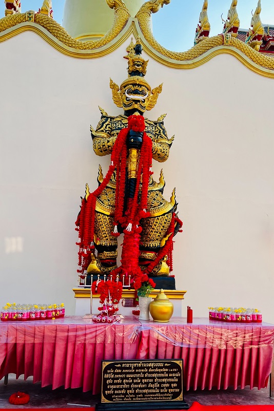 จุดที่ 1 หน้าองค์พระธาตุเจดีย์สีเหลือง ดูสวยงามมากครับมีองค์ท้าวเวสสุวรรณโณประดิษฐานอยู่บูชาขอพรได้เช่น เรื่องโชคลาภร่ำรวยเงินทองหรือหน้าที่การงานให้ก้าวหน้าเจริญรุ่งเรือง