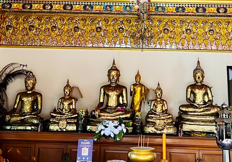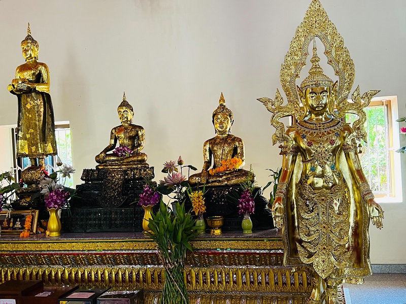 และจุดที่ 4 ติด ๆ กับสระน้ำมีอาคารคล้าย ๆ วิหารด้านในประดิษฐานองค์พระพุทธรูปเก่าแก่สมัยสุโขทัยเป็นพระพุทธรูปหล่อด้วยทองผสมผสานสำริดปางมารวิชัยชาวบ้านเชื่อถึงความศักดิ์สิทธิ์ ตรงจุดนี้สามารถถวายสังฆทานกันได้ครับ เปิดทุกวันตั้งแต่เวลา 09.00น. เป็นต้นไป!!!