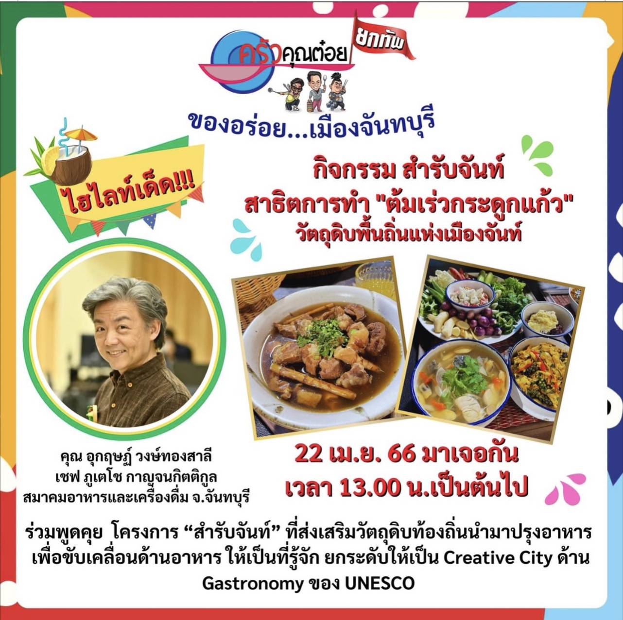 “ครัวคุณต๋อยยกทัพ บุก เซ็นทรัล จันทบุรี” งานนี้เหล่าตัวตึงสายกิน ชิม ช้อปแห่งเมืองจันท์ เตรียมฟิตพุงแล้วมาเช็คอิน กินให้หนำใจ ตลอด 11 วันเต็ม