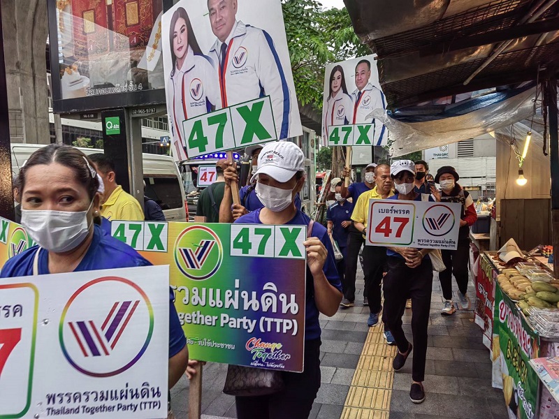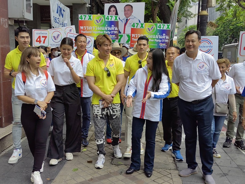เมื่อวันที่ 26 เม.ย.2566 มาดามหยก – กชพร เวโรจน์ ประธานที่ปรึกษาพรรครวมแผ่นดิน นำทีมสส. ปาร์ตี้ลิสท์ “รวมแผ่นดิน” หมายเลข 47 ทีมดารา Change Together เปิดตัวกับชาวกทม. โดยเริ่มที่ สวนสาธารณะลุมพินี ใจกลาง กรุงเทพฯ สร้างความตื่นเต้นยินดีที่ได้พบกับดารานักร้องขวัญใจ อาทิ ตฤณ เศรษฐโชค , ไอยศูรย์ ไมดาน (เล็ก ไอยศูรย์) , อุ้ย รวิวรรณ จินดา , นันทศัย พิศลยบุตร (เต้) , อาภาภัทร สุขสวัสดิ์ชล (ลาดา อาร์สยาม) , ฐานุพงศ์ ศักดิ์ธนาวัฒน์ (กล้วยเชิญยิ้ม) , กวินพนธ์ พานิชย์พงส์ (กำปั้นบาซู) , ฆธาวุธ ปิ่นทอง (โฟน) , จตุภูมิ วงศาริยะ (โก๋) พยปะพูดคุย ทักทายอย่างสนุกสนานเป็นกันเองกับทุกคน หลังจากนั้น ก็ขึ้นรถแห่ รอบเมืองตามเส้นทาง จากสวนลุมพินี สุขุมวิท วัดแขก และวัดยานนาวา