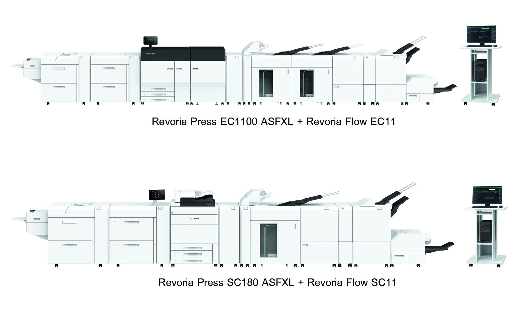 สำหรับไฮไลท์ในงาน คือ การเปิดตัวเครื่องพิมพ์ 2 รุ่น ภายใต้แบรนด์ FUJIFILM  ซึ่งเป็นโมเดลต่อยอดจากตระกูล Revoria Press นั่นคือ เครื่องพิมพ์ระดับโปรดักชันคุณภาพสูง Revoria Press EC1100 ที่มีความเร็วในการพิมพ์สูงสุดถึง 100 หน้า/นาที และเครื่องพิมพ์ Revoria Press SC180/170 ที่มีความเร็วในการพิมพ์ต่อเนื่องสูงสุด 80 หน้า/นาที ความละเอียดในการพิมพ์ที่ 2400 x 2400 dpi ชุดประมวลผลคุณภาพสูง ที่พัฒนาขึ้นมาใหม่ช่วยเพิ่มประสิทธิภาพการทำงานของเครื่องพิมพ์ รองรับกระดาษได้หลากหลายตั้งแต่น้ำหนัก 52 ถึง 400 แกรม ขนาดเล็กสุด 98 x 148 มม. ถึง ขนาดใหญ่สุด 330 x 1200 มม. อีกทั้งมีชุดป้อนกระดาษแบบลมดูด 100 % และชุดหลังการพิมพ์ที่หลากหลายช่วยเพิ่มความคล่องตัวในการทำงานตั้งแต่ขั้นตอนการพิมพ์ไปจนถึงขั้นตอนหลังพิมพ์
