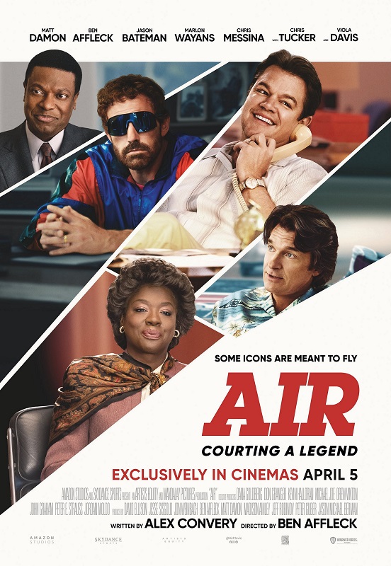 “AIR” ผลงานกำกับฯ โดย เบ็น แอฟเฟล็ค เขียนบทฯ โดย อเล็กซ์ คอนเวอรี่ หนังนำแสดงโดย แม็ตต์ เดม่อน, เบ็น แอฟเฟล็ค, เจสัน เบทแมน, คริส เมสสิน่า, แมทธิว เมเฮอร์, มาร์ลอน เวย์นส, เจย์ โมร์, จูเลียส เทนนอน ร่วมด้วย คริส ทัคเกอร์ และ วิโอล่า ดาวิส ที่ถ่ายทอดเรื่องราวความสัมพันธ์ของหุ้นส่วนที่เปลี่ยนไปได้อย่างเหลือเชื่อ ระหว่าง ไมเคิล จอร์แดน มือใหม่ในอดีตกับแผนกบาสเกตบอลมือใหม่ของ Nike ที่สร้างการเปลี่ยนแปลงให้โลกของกีฬา และค่านิยมของคนรุ่นใหม่กับแบรนด์ Air Jordan เรื่องราวชวนตื่นเต้นของทีมที่เลือกจะฉีกกฎออกจากคนอื่น โดยมีอาชีพการงานเป็นเดิมพัน ภาพในอนาคตที่เห็นได้ชัดเจนของผู้เป็นแม่ที่รู้เรื่องพรสวรรค์อันยิ่งใหญ่ของลูกชายตัวเองกว่าใคร และนักบาสเกตบอลชื่อดังผู้กลายเป็นตำนานความยิ่งใหญ่ตลอดกาล