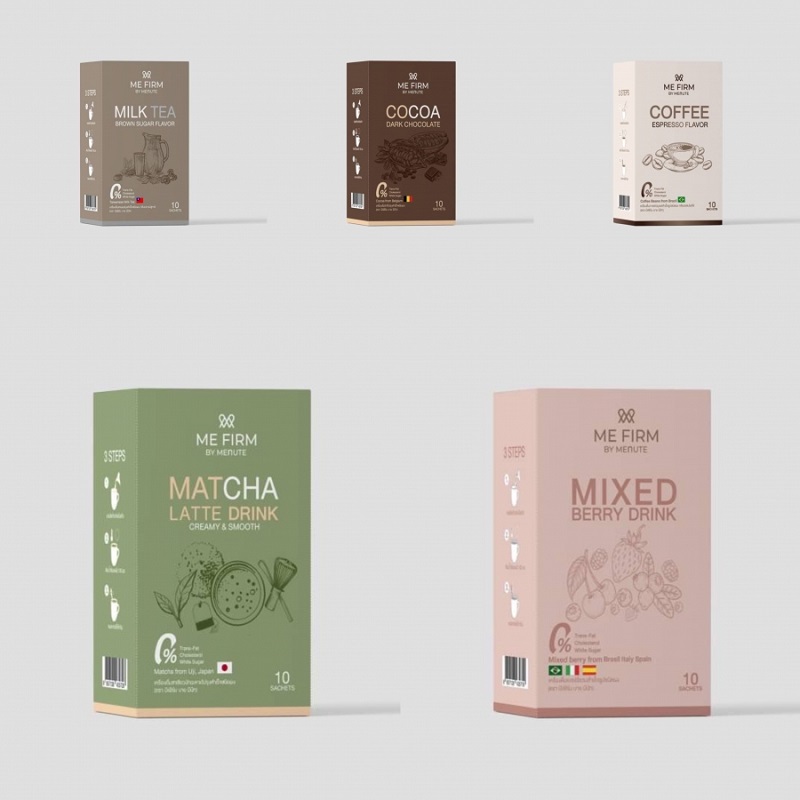 โดยผลิตภัณฑ์ ME FIRM BY MENUTE ถือเป็นผลิตภัณฑ์ชนิดชงดื่มระดับพรีเมี่ยมที่มาแรงเนื่องจาก วัตถุดิบของแต่ละรสชาตินำเข้าจากต่างประเทศ