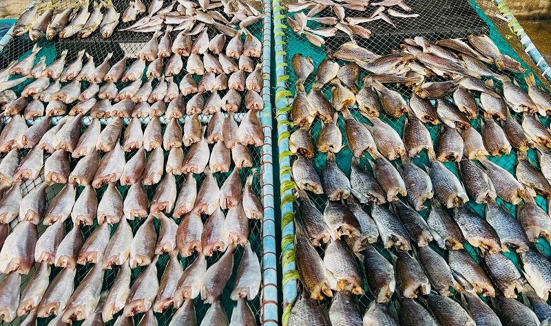 ส่วนจุดที่ 4 ซื้อของฝากในชุมชนได้นะจ๊ะ เช่น ปลาอินทรีย์ กะปิเคยตาดำและเกสรเกลือ หรือจะนั่งร้านอาหารท้องถิ่นอาหารทะเลสด ๆ ก็มีจ้านั่งรับลมพัดผ่านเย็น ๆ ช่วงเวลาแสงตะวันอ่อน ๆ สุดยอดมาก ๆ ครับ