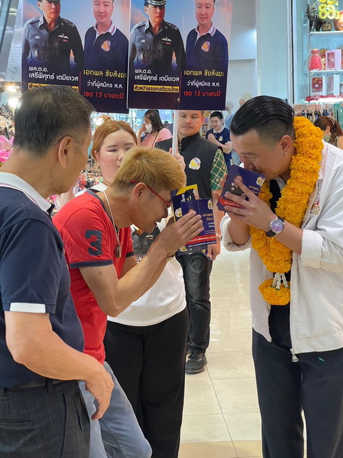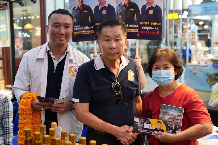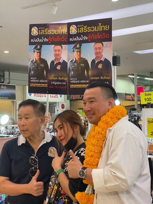 พล.ต.อ.เสรีพิศุทธ์ เตมียเวส หัวหน้าพรรคเสรีรวมไทย พาลูกพรรค นายเอกพล ชัยสังฆะ ผู้สมัคร สส. เขต14 บางกะปิ วังทองหลาง (เฉพาะคลองเจ้าคุณสิงห์) อ้อนขอคะแนนเสียงจากพ่อแม่พี่น้องชาวบางกะปิ ได้รับการตอบรับเป็นจำนวนมาก และชื่นชมนโยบายพรรค ที่ชูบำนาญประชาชนและเบี้ยผู้พิการ 3,000 บาทต่อเดือน เน้นปราบปรามทุจริต ยาเสพติด พร้อม 14 นโยบายที่โดนใจประชาชน