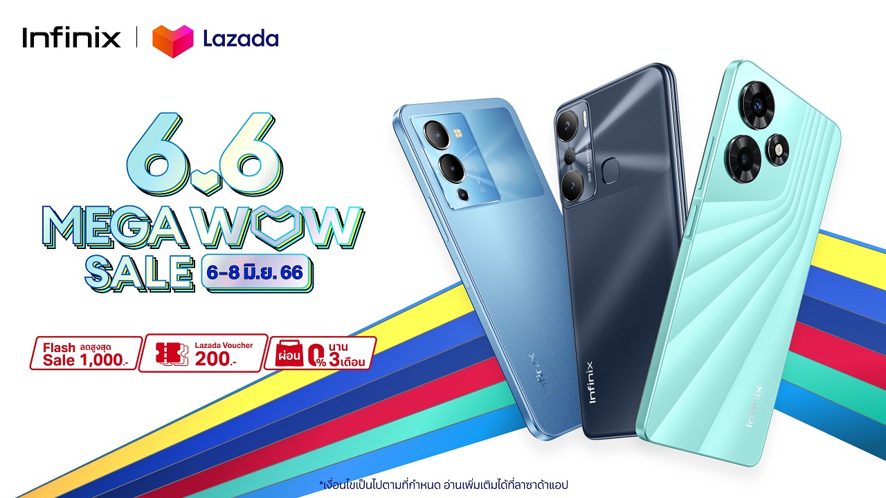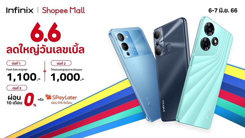2 มิถุนายน 2566, กรุงเทพฯ – อินฟินิกซ์ (Infinix) แบรนด์สมาร์ตโฟนสายเกมราคาคุ้มค่า ครบครันทุกการใช้งาน และตอบโจทย์ไลฟ์สไตล์คนรุ่นใหม่ ต้อนรับมหกรรมช้อปปิ้งออนไลน์สุดยิ่งใหญ่กลางปี จัดเต็มโปรดี