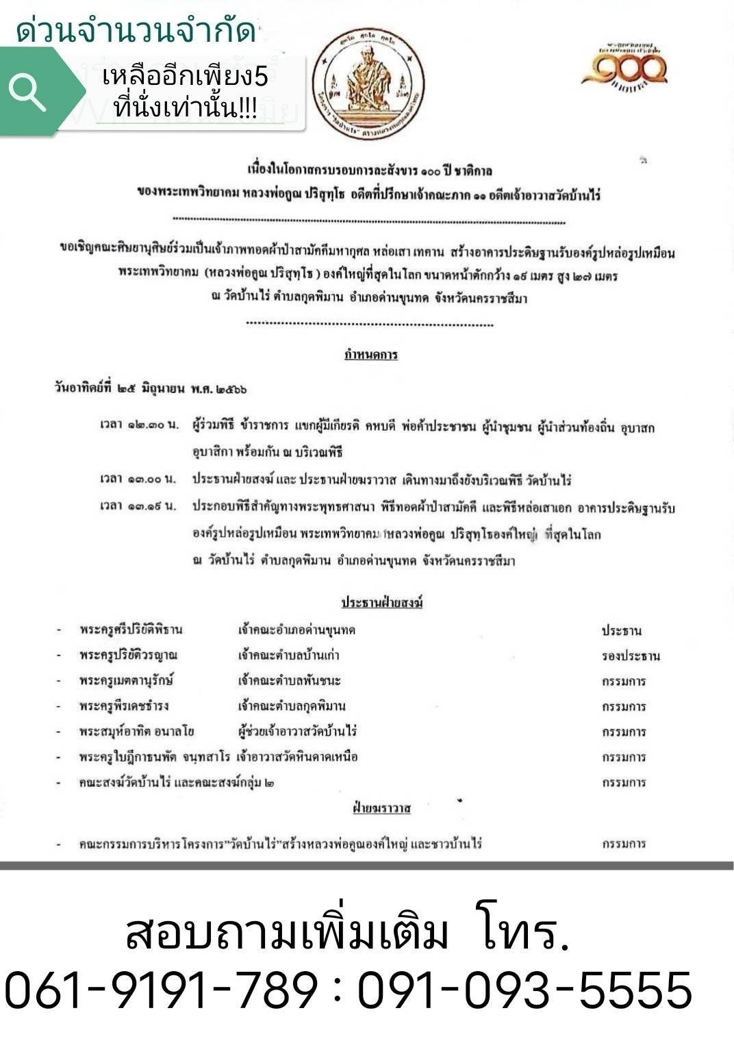 หรือท่านใดสนใจร่วมเดินทางรับมหาบุญ​ ร่วมสร้างหลวงพ่อคูณองค์ใหญ่​ ที่สุดในโลกร่วมเดินทาง​ ไปที่​ วัดบ้านไร่ จังหวัดนครราชสีมากับคณะผู้สื่อข่าว​ฯลฯ​