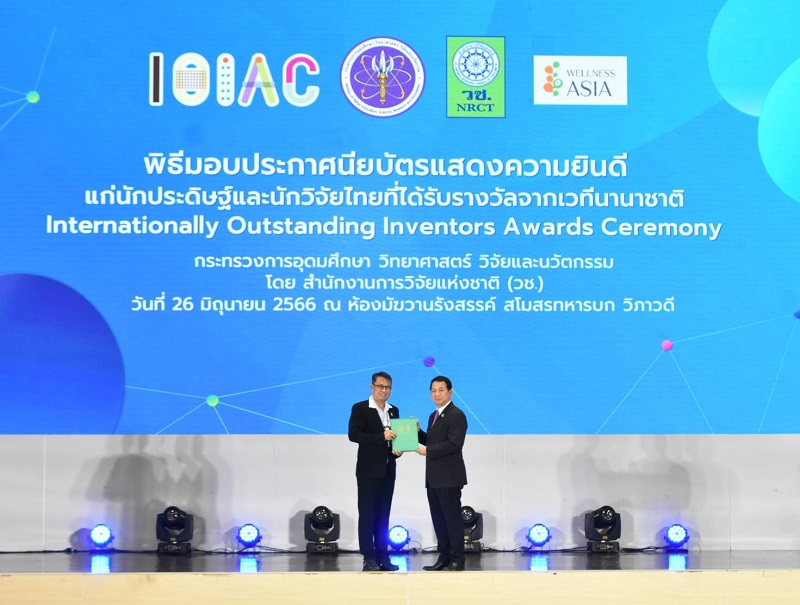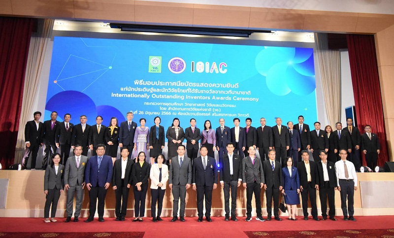 วันที่ 26 มิถุนายน 2566 กระทรวงการอุดมศึกษา วิทยาศาสตร์ วิจัยและนวัตกรรม โดย สำนักงานการวิจัยแห่งชาติ (วช.) จัดพิธีมอบประกาศนียบัตรแสดงความยินดีแก่นักประดิษฐ์และนักวิจัยไทยที่ได้รับรางวัลจากเวทีนานาชาติ เพื่อประกาศเกียรติคุณแก่นักประดิษฐ์และนักวิจัยไทยที่ได้รับรางวัลจากการนำผลงานวิจัยและนวัตกรรมไปประกวดเวทีนานาชาติ กว่า 261 ผลงานใน 5 เวทีจาก 5 ประเทศ โดยมี ศาสตราจารย์สิริฤกษ์ ทรงศิวิไล ปลัดกระทรวงการอุดมศึกษา วิทยาศาสตร์ วิจัยและนวัตกรรม เป็นประธานในพิธีฯ และปาฐกถาพิเศษ ในหัวข้อ “สิ่งประดิษฐ์และนวัตกรรมไทยก้าวไกลระดับโลก” โดย ดร.วิภารัตน์ ดีอ่อง ผู้อำนวยการสำนักงานการวิจัยแห่งชาติ กล่าวรายงาน ณ ห้องมัฆวานรังสรรค์ ชั้น 3 สโมสรทหารบก ถนนวิภาวดีรังสิต กรุงเทพมหานคร