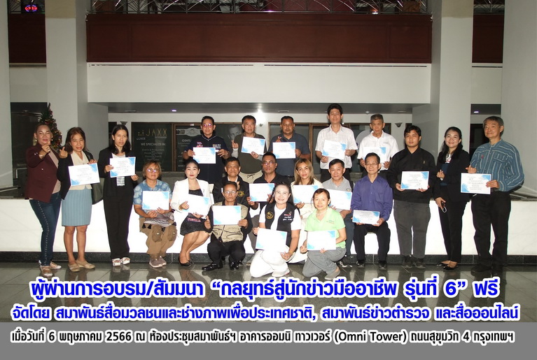 สมาพันธ์ฯ ขอขอบคุณผู้ผ่านการอบรม รุ่นที่ 1-รุ่นที่ 7 ประมาณ 300 ท่าน จากทุกสาขาอาชีพ ได้แก่ สื่อมวลชน ข้าราชการ ตำรวจ นักกฎหมาย พ่อค้านักธุรกิจ ไกด์-ล่าม ยูทูปเบอร์ แอดมิน สื่อสังคมออนไลน์ จิตอาสา อาชีพอิสระ เยาวชน นักศึกษา และผู้สนใจทั่วไป ที่ให้ความสนใจ และประสบผลสำเร็จอย่างมาก จึงเปิดรุ่นที่ 8 และทุกๆเดือน อย่างต่อเนื่อง