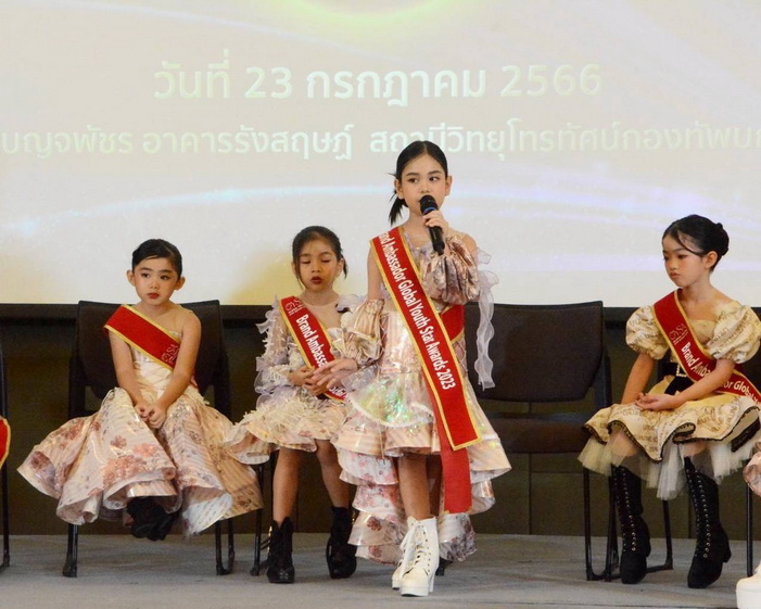 พร้อมกันนี้ จะมีการเปิดตัว 12 Brand Ambassador ของ โครงการ Global Youth Star Awards 2023 อาทิ ด.ญ.พิมพ์ภัช พรอนันต์ตระกูล (หนูดี) / ด.ญ.ชัยวดี หิรัญลาภ ( แพรวา )/ ด.ญ.พิชญา ยั่งยืนพิพัฒน์กุล (พลอยฟ้า)/ ด.ญ.อาภัสรินท์ ปั้วเฮงทรัพย์ (เซลีน) / ด.ช.ตฤณธพัฒน์ ปั้วเฮงทรัพย์ ( มาร์ค) / ด.ญ.กมลพร บำรุงศิลป์เมลวิน (ริบบิ้น ) / ด.ช.พงศ์ภีระ อัครนิรันดร์กุล / ด.ญ.ปูชิตา ธนธรรม (ป๊อบ) / ด.ญ.เอญาดา ศรีสุข (เอญ่า) / ด.ญ.กัญญ์พิญ์ชา มิ่งขำ (ไออุ่น) / ด.ญ.ดาเนียร์ นาคสุข (ดาเนียร์ ) และ ด.ญ.ภคภรณ์ กิตติชริน (พลิน) ทีมเยาวชนคนเก่งที่มีผลงานในวงการหลากหลาย ทั้ง ร้อง เล่น เต้น รำ เพื่อจะได้มาเป็นตัวแทนในการประชาสัมพันธ์โครงการต่อไป