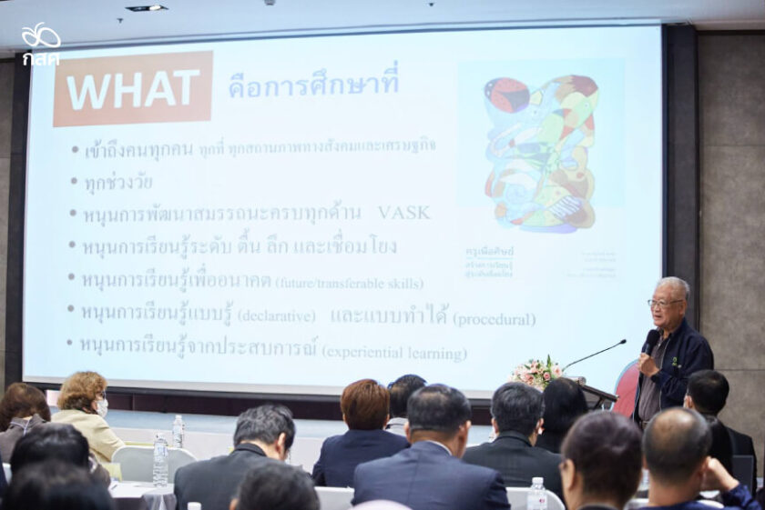 ศ.นพ.วิจารณ์ พานิช ประธานอนุกรรมการพัฒนาคุณภาพโรงเรียนทั้งระบบ กสศ. กล่าวเปิดเวทีแลกเปลี่ยนเรียนรู้ “ : การจัดการศึกษาที่ตอบโจทย์ของชีวิต เพื่อลดความเหลื่อมล้ำ” เมื่อวันที่ 1 กรกฎาคม 2566 ณ ห้องประชุม Magnolia โรงแรมทีเค. พาเลซ โฮเทล แอนด์ คอนเวนชั่น “การรวมตัวของเครือข่ายในวันนี้ เป็นการเปลี่ยนจาก project เป็น movement จากโครงการไปเป็นขบวนการ เปลี่ยนเจ้าของจาก กสศ. เป็นตัวท่านทุกคน และเครือข่ายของท่าน เราหวังว่าประเทศไทย ระบบการศึกษาไทย จะได้รับประโยชนนี้อย่างยั่งยืน จากตัว P (Project) ไปเป็น ตัว M (Movement) จากการเปลี่ยนเจ้าของ ในครั้งนี้”