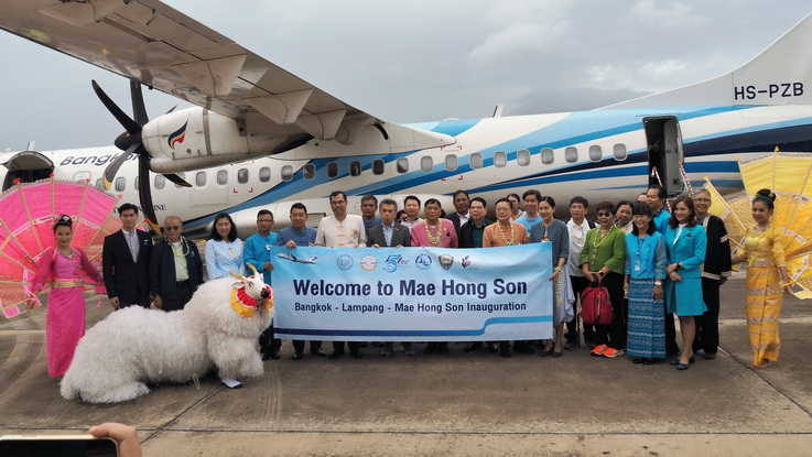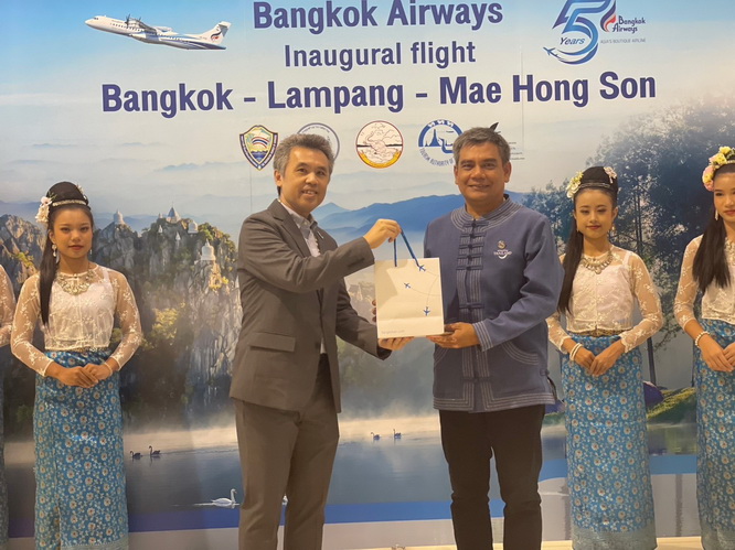 หลังจากที่สายการบินนกแอร์ได้หยุดบินในเส้นทางสู่จังหวัดแม่ฮ่องสอน เนื่องจากการคืนเครื่องบินแบบใบพัด ทำให้ระหว่างเดือนเมษายน – กรกฎาคม 2566 ไม่มีเครื่องบินพาณิชย์เดินทางทางอากาศสู่จังหวัดแม่ฮ่องสอน และจังหวัดแม่ฮ่องสอนเองก็มีปัจจัยด้านภูมิประเทศ ที่ทำให้เครื่องบินขนาดใหญ่ขึ้น-ลงได้ยาก โดยจังหวัดแม่ฮ่องสอน พร้อมด้วยหอการค้าไทย หอการค้าจังหวัดแม่ฮ่องสอน กรมท่าอากาศยาน ท่าอากาศยานแม่ฮ่องสอน ททท.สำนักงานแม่ฮ่องสอน ตลอดจนสภาอุตสาหกรรมการท่องเที่ยวจังหวัดแม่ฮ่องสอน ได้ประสานงานกับสายการบินพร้อมได้รับความร่วมมือสายการบินบางกอกแอร์เวย์ส กำหนดเปิดให้บริการเส้นทางบิน สุวรรณภูมิ – ลำปาง – แม่ฮ่องสอน – ลำปาง – สุวรรณภูมิ ในทุกวันจันทร์ พุธ และศุกร์ ตั้งแต่วันที่ 2 สิงหาคม 2566 เป็นต้นไป ถึงแม้จำนวนเครื่องบินจะไม่เพียงพอ แต่ทางสายการบินบางกอกแอร์เวยส์ได้จัดเครื่องบินใบพัดแบบ ATR72-500 (ขนาด 70 ที่นั่ง) มาให้บริการในเส้นทางดังกล่าว โดยมีเส้นทางบินของเที่ยวบิน PG205 : สุวรรณภูมิ – ลำปาง – แม่ฮ่องสอน และ PG206 : แม่ฮ่องสอน – ลำปาง – สุวรรณภูมิ ทั้งขาเข้าและขาออกจังหวัดแม่ฮ่องสอน จะแวะ Transit ที่ท่าอากาศยานนครลำปาง ประมาณ 40 นาที ซึ่งนับเป็นโอกาสดีในการเชื่อมเส้นทางการคมนาคมและเชื่อมโยงการท่องเที่ยวเมืองรองในภูมิภาคภาคเหนือของจังหวัดลำปางกับจังหวัดแม่ฮ่องสอน กอปรกับจังหวัดลำปางก็เป็นจุดเชื่อมโยงโครงข่ายการคมนาคมทางบกไปยังจังหวัดอื่น ๆ ในภูมิภาคภาคเหนือได้อย่างสะดวก