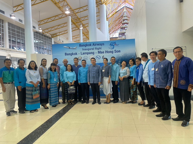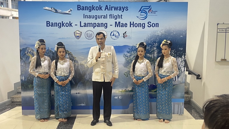 ต่อมานายเชษฐาโมสิกรัตน์ ผู้ว่าราชการจังหวัดแม่ฮ่องสอน ได้กล่าวต้อนรับผู้โดยสาร นักท่องเที่ยว และคณะจากจังหวัดลำปางซึ่งนำโดยนายชัชวาลย์ ฉายะบุตร ผู้ว่าราชการจังหวัดลำปาง นายศิริวัฒน์ บุปผาเจริญ รองผู้ว่าราชการจังหวัดลำปาง พร้อมทั้งได้กล่าวถึงความโดดเด่นของแหล่งท่องเที่ยวจังหวัดแม่ฮ่องสอนทั้งทางด้านธรรมชาติ ศิลปะวัฒนธรรม รวมทั้งชุมชนที่หลากหลายของชาติพันธุ์ ตลอดจนมีกิจกรรมที่น่าสนใจสามารถเดินทางท่องเที่ยวได้ตลอดปี และยังมีของฝากที่ถูกใจผู้รับ และนับเป็นโอกาสอันดีที่สายการบินบางกอกแอร์เวย์ส ได้ให้บริการการคมนาคมทางอากาศเชื่อมโยงกับจังหวัดลำปาง – สุวรรณภูมิ ทำให้เพิ่มโอกาสในการเชื่อมโยงด้านการท่องเที่ยวของทั้งสองจังหวัดไปพร้อมกันด้วย และขอขอบคุณสายการบินบางกอกแอร์เวย์ส ตลอดจนผู้มีส่วนเกี่ยวข้องทุกท่าน และขอให้สายการบินสนับสนุนให้บริการกับจังหวัดแม่ฮ่องสอนตลอดไป