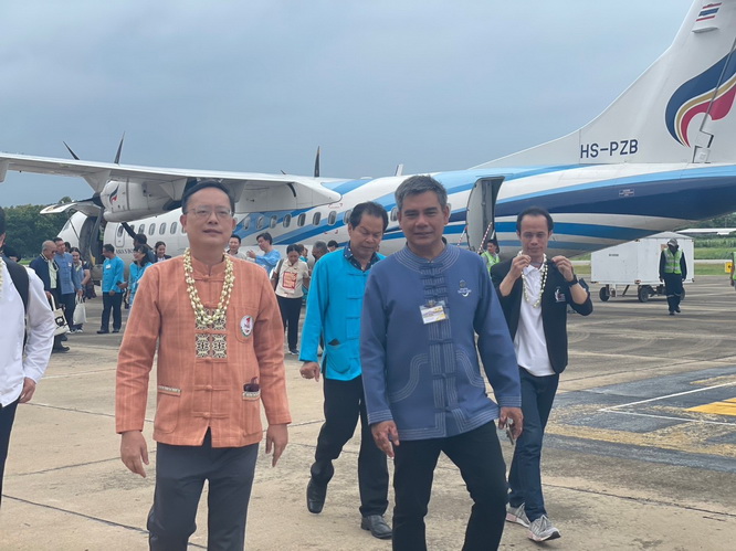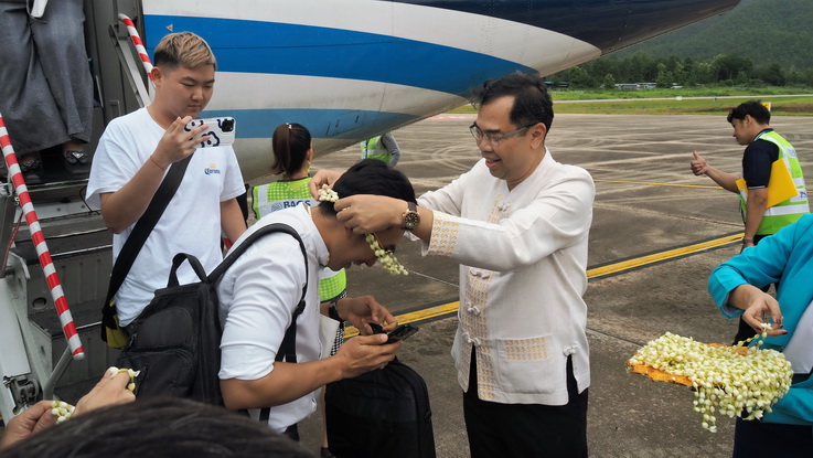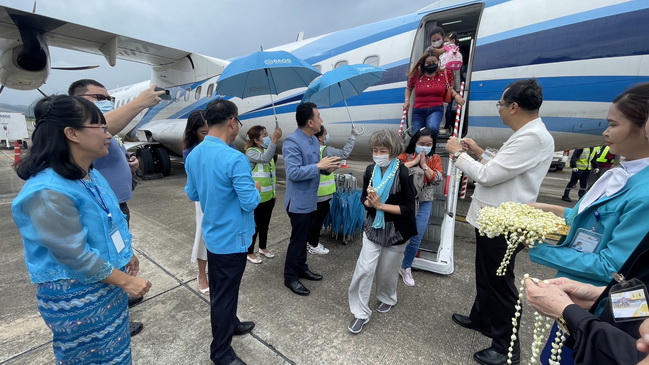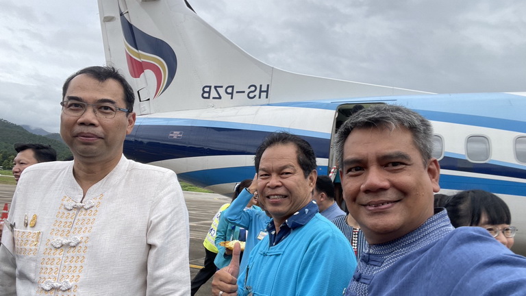 วันพุธที่ 2 สิงหาคม 2566 เวลา 15.00 น. จังหวัดแม่ฮ่องสอน นำโดยนายเชษฐาโมสิกรัตน์ ผู้ว่าราชการจังหวัดแม่ฮ่องสอน พร้อมด้วยนายศรัณยู มีทองคำ รองผู้ว่าราชการจังหวัดแม่ฮ่องสอน นายประเสริฐ จิตต์พลีชีพ รองผู้ว่าราชการจังหวัดแม่ฮ่องสอน พร้อมด้วยหัวหน้าส่วนราชการ หัวหน้าหน่วยงานภาครัฐภาคเอกชน กว่า 40 คน ร่วมให้การต้อนรับผู้โดยสารและนักท่องเที่ยวที่เดินทางมากับสายการบินบางกอกแอร์เวย์ส เที่ยวบินแรก ซึ่งมีผู้โดยสารขาเข้าเต็มลำ 60 ที่นั่ง (Load Factor 100 %) อย่างคึกคัก