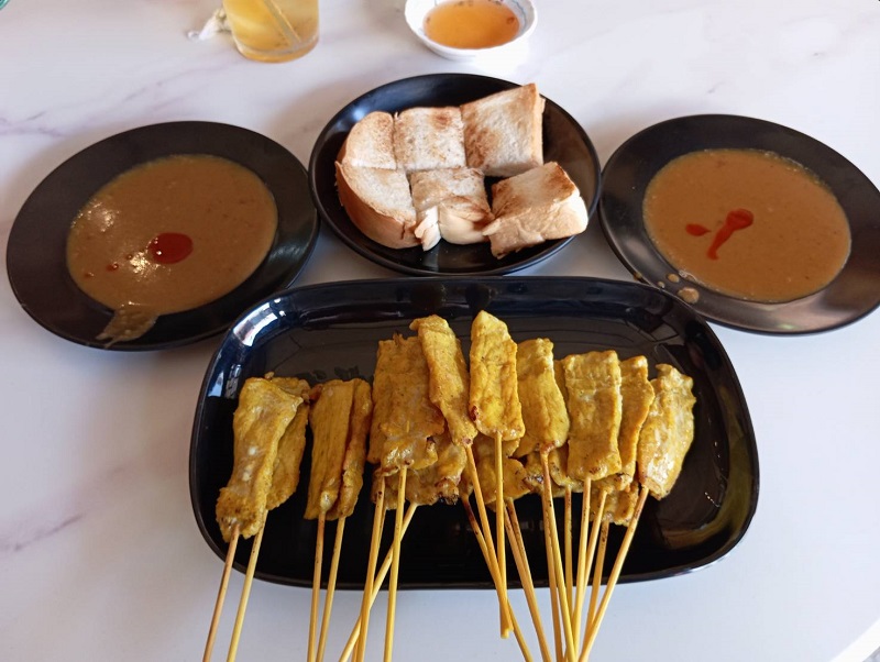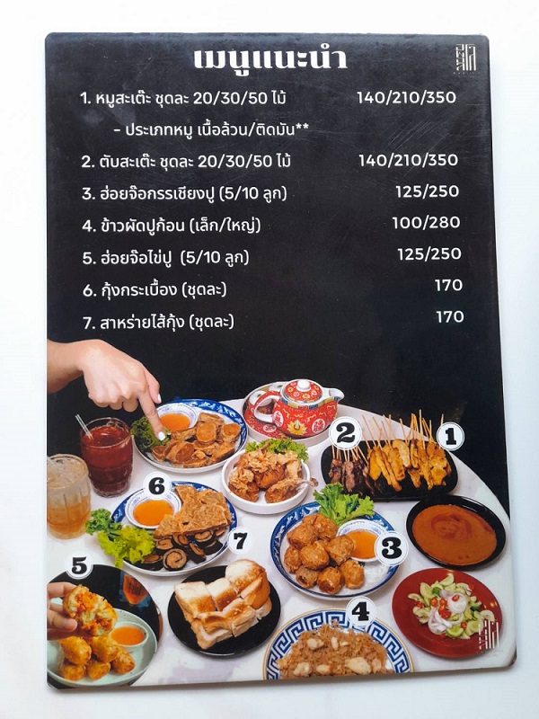 สำหรับเรามีโอกาสไปทานพอดีเป็นรุ่นลูกได้เห็นการตกแต่งร้านใหม่ ก้าวแรกที่เข้าไปในร้านรู้สึกประทับใจบรรยากาศ รอยยิ้มและการบริการมาก จากที่ทานหมูสะเต๊ะสองครั้งและถามคนสนิทยืนยันรสชาติของหมูเนื้อนุ่มไม่เหนียว ตับก็นุ่มไม่แพ้กันเพราะเป็นสูตรดั่งเดิม ขณะนั่งรอก็จะได้กลิ่นหมูสะเต๊ะปื้งจากเตาถ่านหอมชวนน้ำลายหกแล้วหกอีก นอกจากหมูสะเต๊ะ ตับสะเต๊ะแล้ว ร้านได้เพิ่มเมนูอื่นที่เป็นฝีมือของคุณแม่ อย่าง ฮ่อยจ๊อกรรเชียงปู ฮ่อยจ๊อไข่ปู แม้ทุกอย่างที่ทานไปนั้นจะเลี่ยน แต่ร้านแนะนำชามะลิเย็นชื่นใจแก้เลี่ยนได้ดีจากที่ดื่ม