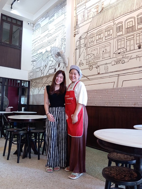 ต่อด้วยน้องสาวสายบัญชี จากมหาวิทยาลัยจุฬาฯ มายด์ – พรชนก ปรัชญาโรจน์ เสริมต่อว่า “ชื่อมายด์นะคะ เป็นทายาทรุ่นพี่สาม นับจากอากงเป็นคนเริ่มหมูสะเต๊ะ แล้วเป็นคุณพ่อก็มาเป็นรุ่นหนูกับพี่ ตอนนี้มายด์อายุ 28 ค่ะ คือจริง ๆ อากงทำหาบเร่มาก่อนค่ะ แต่ตึกนี้เซ็งตอนปีที่ ยานอพอลโลขึ้นปี 1969 อากงก็เลยตั้งชื่อร้านอพอลโล พอมารุ่นหนูกับพี่มิ้นก็มารีโนเวท เพราะแต่ก่อนที่คุณพ่อขาย ซึ่งหนูเกิดมาก็เป็นบ้านหลังนี้แล้ว วันหยุดหนูก็จะช่วยคุณพ่อ คือเห็นธุรกิจนี้มาตั้งแต่เด็ก แล้วพอเรียนจบมาเห็นคุณพ่อยืนปิ้งหมูนาน ๆ เขาปวดขา หลัก ๆ คุณพ่อจะทำเองทุกอย่าง แต่ทีนี้คุณพ่ออายุเริ่มเยอะ ปีนี้หกสิบกว่าแล้วค่ะ หนูกับพี่สาวเลยคุยกันอยากรับช่วงกิจการต่อ แต่เราเป็นคนรุ่นใหม่คือตึกมันค่อนข้างโทรม ของเราอร่อยอยู่แล้วเนอะ (หัวเราะ) อาจจะชมตัวเองนิดนึง ก็เลยมองว่าเราอยากจะปรับให้มันเข้ากับยุคสมัยด้วย ถ้าเด็ก ๆ รุ่นเรามาเขาก็รู้สึกอยากเข้าร้านเลยทำการรีโนเวทร้านให้ตอบโจทย์ทั้งคนรุ่นเก่าและคนรุ่นใหม่ด้วยค่ะ จากรีโนเวทแล้วรุ่นใหม่มาเยอะขึ้นนะคะ จากเด็ก ๆ ที่ไม่เคยเข้าร้านหมูสะเต๊ะมาก่อน แต่เด็กรุ่นใหม่ก็จะมองว่าหมูสะเต๊ะจะกินเป็นมื้ออาหารได้มั้ย แต่ก็มีเด็กมาเยอะขึ้นค่ะ (เล่าไปยิ้มไป) และลูกค้าประจำเป็นเด็กเพิ่มขึ้นค่ะ