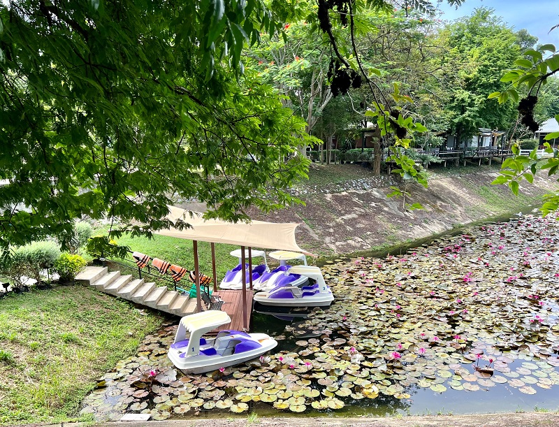 จุดที่ 2 บริการสปาหรือจะอบไอน้ำสมุนไพร มีห้องอบบริการบรรยากาศริมบึงบัวที่กำลังบานเต็มบึงสีแดงสวยมากหรือจะนวดแบบแผนไทยก็มีนะจ๊ะ แต่อันนี้เป็นบริการเสริมมีค่าบริการในราคาเป็นกันเองสามารถจองได้ครับ