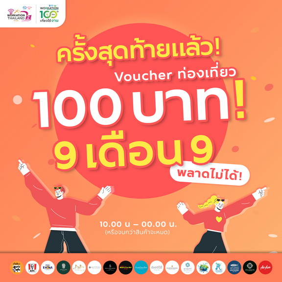 สำหรับกิจกรรม Workation Thailand 100 เดียวเที่ยวได้งาน ที่จัด Voucher ท่องเที่ยวจากสถานประกอบการชั้นนำ มาให้ซื้อกันได้ในราคาเพียง  บาทแบบจุก ๆ