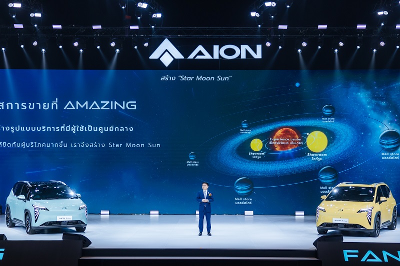 คุณโอเชียน หม่า กล่าวว่า “AION กำลังเร่งดำเนินแผนการขยายเครือข่ายช่องทางจำหน่ายอย่างรวดเร็วตามหัวเมืองใหญ่ของประเทศไทย รวมถึงสถานที่ท่องเที่ยวยอดนิยมต่างๆ ในเวลานี้ AION ได้จัดตั้งโชว์รูมแล้ว 30 แห่ง โดยอยู่ในเขตกรุงเทพฯ และปริมณฑล 25 แห่ง ตั้งเป้าว่าจะสร้างโชว์รูมและศูนย์บริการ 50 แห่งแล้วเสร็จภายในสิ้นปีนี้ เพื่อมอบประสบการณ์การบริการยานยนต์คุณภาพสูงยิ่งขึ้นแก่ผู้บริโภคชาวไทย”