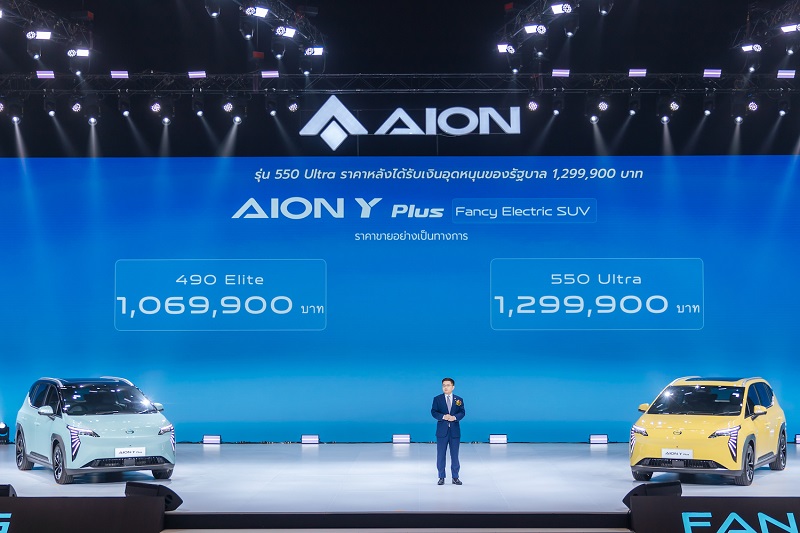 ภายในงานได้มีการประกาศราคาอย่างเป็นทางการของ AION Y Plus โดยรุ่น 490 Elite ราคา 1,069,900 บาท และรุ่น 550 Ultra ราคา 1,299,900 บาท นอกจากนี้ทาง AION ยังได้เตรียม 4 เซอร์ไพรส์พิเศษให้ลูกค้าชาวไทย ได้แก่ การรับประกันสุดพิเศษ, สินเชื่อสุดพิเศษ, ฟรี! แท่นชาร์จสำหรับติดตั้งที่บ้าน และแพ็กเกจซุปเปอร์กิฟต์