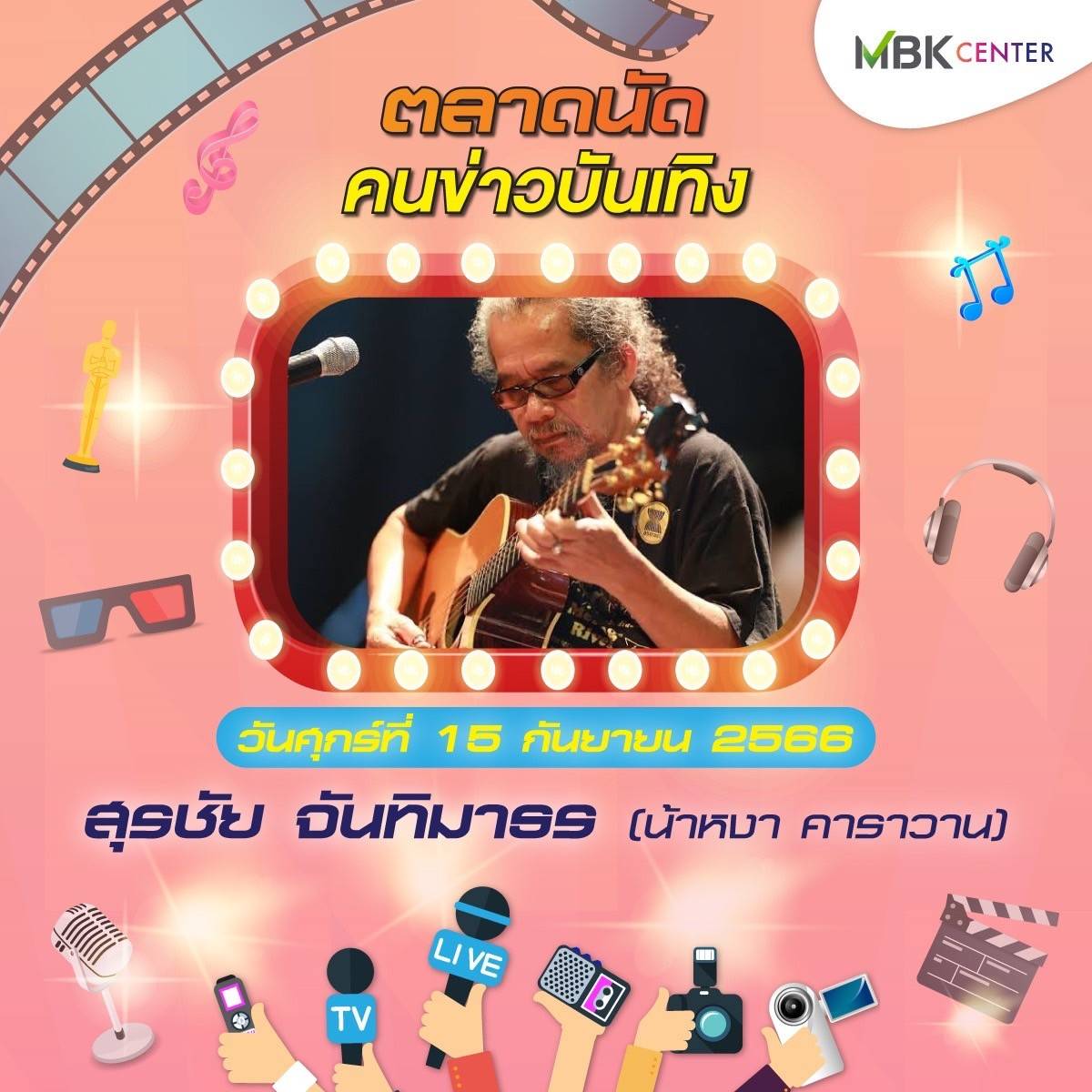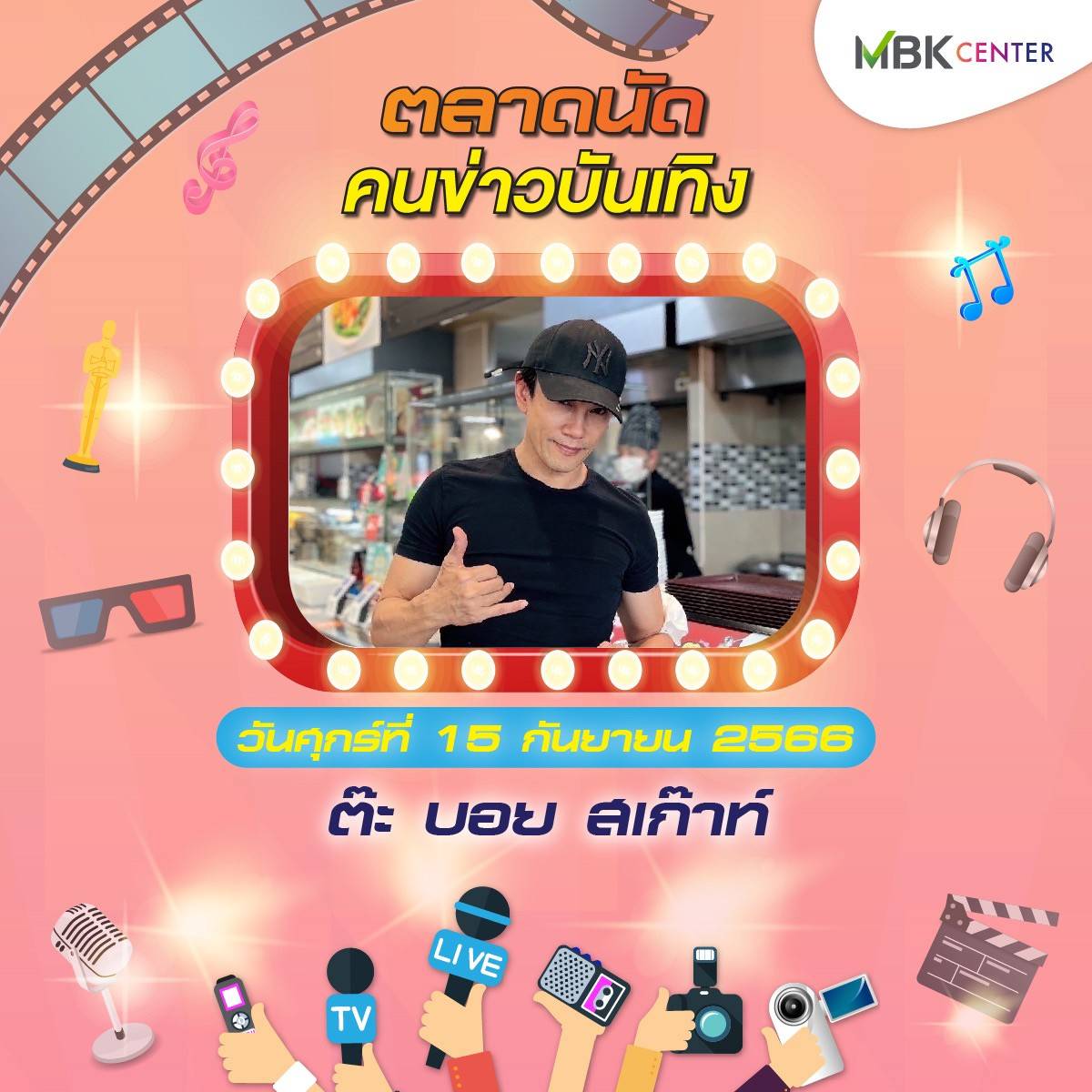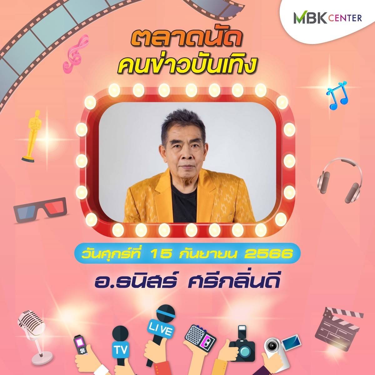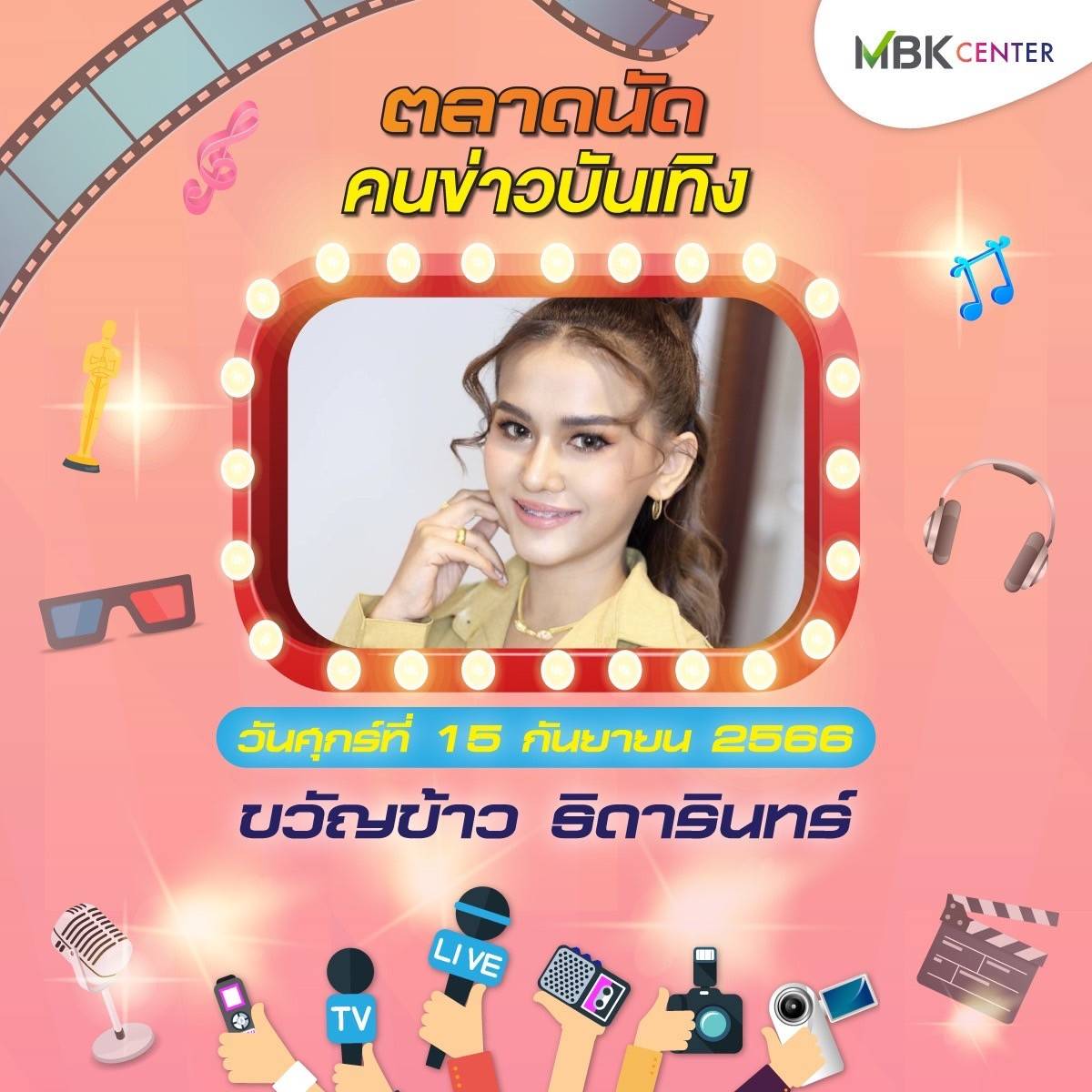 ศูนย์การค้าเอ็ม บี เค เซ็นเตอร์ ร่วมกับ ชมรมนักข่าวบันเทิง จัดงาน ตลาดนัดคนข่าวบันเทิง ปีที่ 2 ชั้น G ลานปทุมวัน ฮอลล์ ระหว่างวันศุกร์ที่ 15 – วันอาทิตย์ที่ 17 กันยายน 2566 พบกับสินค้าคุณภาพจากนักข่าวบันเทิงและศิลปินดารา ทั้งของกินของใช้หลากหลาย อาทิ บูธตำโคตรนัว ส้มตำรสเด็ดแซ่บซี้ด บูธhealthy food สารพัดเมนูเพื่อสุขภาพ ทั้งน้ำส้ม น้ำเก๊กฮวย สลัดโรล ขนมจีนน้ำเงี้ยว ลาบเหนือคั่ว ยำตามใจ บูธตูนนิสต์ทีเชิ้ต เสื้อยืด กวินเต้าหู้นมสด หอมหวาน นุ่มละมุนลิ้น บูท LOVE RAK จำหน่ายสบู่สมุนไพร และกาแฟเพื่อสุขภาพ สุภาประดิษฐ์ ผลงานแฮนด์เมดในรูปแบบของตุ๊กตา เข็มกลัด พวงกุญแจ ส่วนบูธคนบันเทิง นำโดย นักแสดง-พิธีกรอารมณ์ดี ตุ๊ยตุ่ย พุทธชาด กับผลิตภัณฑ์บำรุงผิวหน้า Swiss Lab ดีเจบอย วราวุธ แห่งรถไฟดนตรี และ หนูมิเตอร์ นำผลิตภัณฑ์กาแฟร่วมจำหน่ายในงาน เอ สุรพันธ์ ชาวปากน้ำ นำผลิตภัณฑ์เจทิพย์ เกาลูนนู้ดเดิ้ล ก๋วยเตี๋ยวตั้งใจ – ผัดไทฯ ตามจินฯ และชาไฉไล มาร่วมส่งความสุข บูธ ployhomemade หลากหลายเมนูความอร่อยจาก พลอย นธรรมพร ภรรยานักร้องหนุ่มสุดเท่ ปาล์ม Instinct และ ร้าน Vintage House ของร็อกเกอร์สาว นรินทร ณ บางช้าง นอกจากนี้ยังมีบูธจำหน่ายเสื้อผ้าและและสินค้ามือสอง ผลิตภัณฑ์เพื่อสุขภาพและความงามอีกมากมายให้ได้