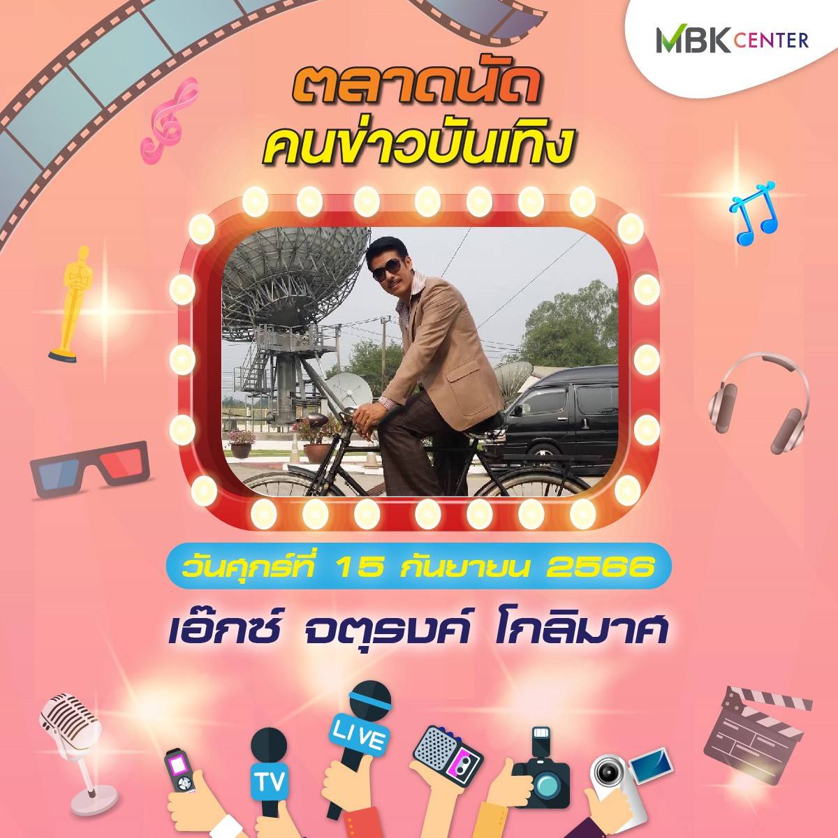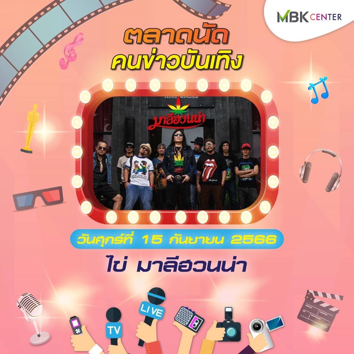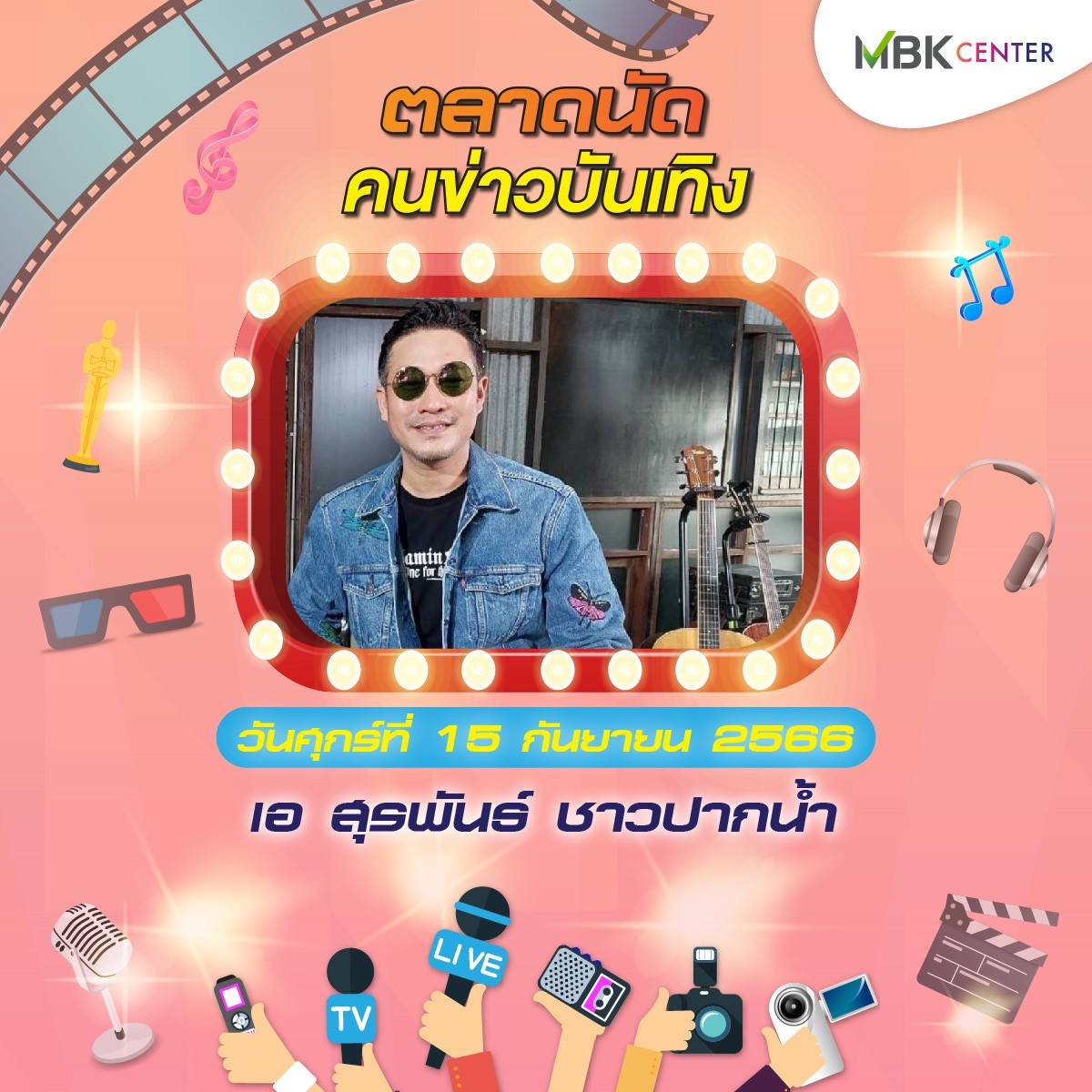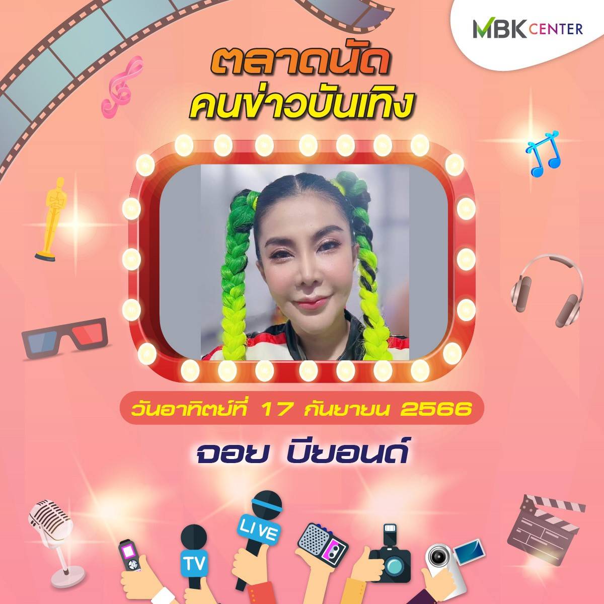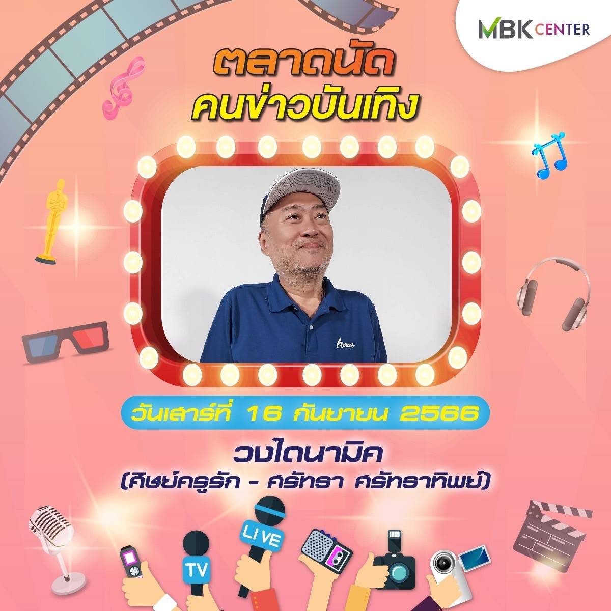 ศูนย์การค้าเอ็ม บี เค เซ็นเตอร์ ร่วมกับ ชมรมนักข่าวบันเทิง จัดงาน ตลาดนัดคนข่าวบันเทิง ปีที่ 2 ชั้น G ลานปทุมวัน ฮอลล์ ระหว่างวันศุกร์ที่ 15 – วันอาทิตย์ที่ 17 กันยายน 2566 พบกับสินค้าคุณภาพจากนักข่าวบันเทิงและศิลปินดารา ทั้งของกินของใช้หลากหลาย อาทิ บูธตำโคตรนัว ส้มตำรสเด็ดแซ่บซี้ด บูธhealthy food สารพัดเมนูเพื่อสุขภาพ ทั้งน้ำส้ม น้ำเก๊กฮวย สลัดโรล ขนมจีนน้ำเงี้ยว ลาบเหนือคั่ว ยำตามใจ บูธตูนนิสต์ทีเชิ้ต เสื้อยืด กวินเต้าหู้นมสด หอมหวาน นุ่มละมุนลิ้น บูท LOVE RAK จำหน่ายสบู่สมุนไพร และกาแฟเพื่อสุขภาพ สุภาประดิษฐ์ ผลงานแฮนด์เมดในรูปแบบของตุ๊กตา เข็มกลัด พวงกุญแจ ส่วนบูธคนบันเทิง นำโดย นักแสดง-พิธีกรอารมณ์ดี ตุ๊ยตุ่ย พุทธชาด กับผลิตภัณฑ์บำรุงผิวหน้า Swiss Lab ดีเจบอย วราวุธ แห่งรถไฟดนตรี และ หนูมิเตอร์ นำผลิตภัณฑ์กาแฟร่วมจำหน่ายในงาน เอ สุรพันธ์ ชาวปากน้ำ นำผลิตภัณฑ์เจทิพย์ เกาลูนนู้ดเดิ้ล ก๋วยเตี๋ยวตั้งใจ – ผัดไทฯ ตามจินฯ และชาไฉไล มาร่วมส่งความสุข บูธ ployhomemade หลากหลายเมนูความอร่อยจาก พลอย นธรรมพร ภรรยานักร้องหนุ่มสุดเท่ ปาล์ม Instinct และ ร้าน Vintage House ของร็อกเกอร์สาว นรินทร ณ บางช้าง นอกจากนี้ยังมีบูธจำหน่ายเสื้อผ้าและและสินค้ามือสอง ผลิตภัณฑ์เพื่อสุขภาพและความงามอีกมากมายให้ได้