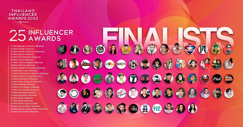 งาน Thailand Influencer Awards 2023 ได้รับการสนับสนุนจากหน่วยงานต่างๆ จากหลากหลายอุตสาหกรรม