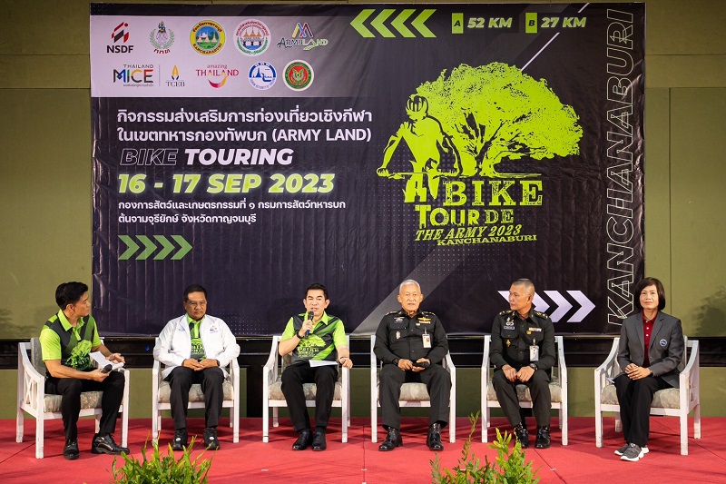 กาญจนบุรี ร่วมกับ กองทัพบก และสมาคมกีฬาแห่งจังหวัดกาญจนบุรี ร่วมแถลงข่าวการจัดกิจกรรมจักรยาน ไบค์ ทัวร์เดอ อาร์มี (Bike Tour De The Army)” ส่งเสริมการท่องเที่ยวในเขตทหาร ชวนนักปั่นสายลุยรักธรรมชาติ ร่วมพิสูจน์เส้นทางอาร์มี่แลนด์ 17 ก.ย.นี้