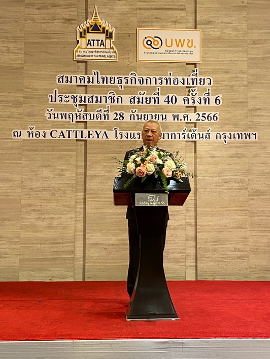 วันที่ 28 ก.ย. 66 สมาคมไทยธุรกิจการท่องเที่ยว (ATTA) โดยนายศิษฎิวัชร ชีวรัตนพร นายกสมาคมฯ จัดประชุมสมาชิก สมัยที่ 40 ครั้งที่ 6 ที่โรงแรมรามา การ์เด้นส์ โดยได้รับเกียรติจากนายพิพัฒน์ รัชกิจประการ รัฐมนตรีว่าการกระทรวงแรงงาน มากล่าวปาฐกถาพิเศษ เรื่อง นโยบายการยกระดับแรงงานภาคท่องเที่ยวเพื่อส่งเสริมอุตสาหกรรมการท่องเที่ยว